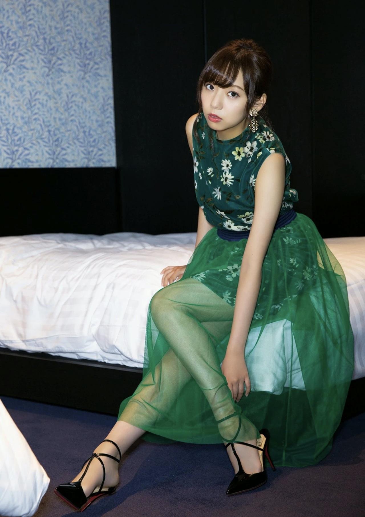 在东京塔下,少女与秋叶的邂逅。日本美女新内真衣写真集系列,一袭绿裙增色,若隐若现迷人日本写真女星 日式少女写真 日文艺写真 日冷艳写真 日版美女写真 永濑由衣写真 日剧女主写真