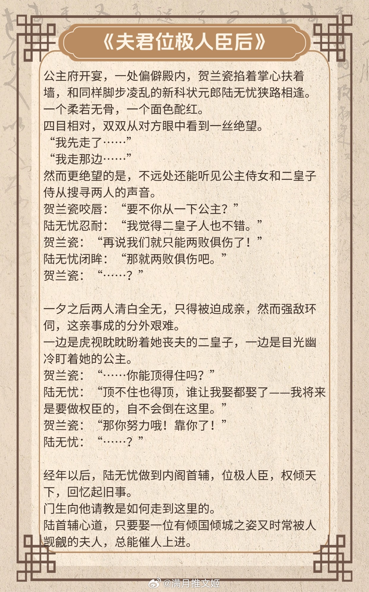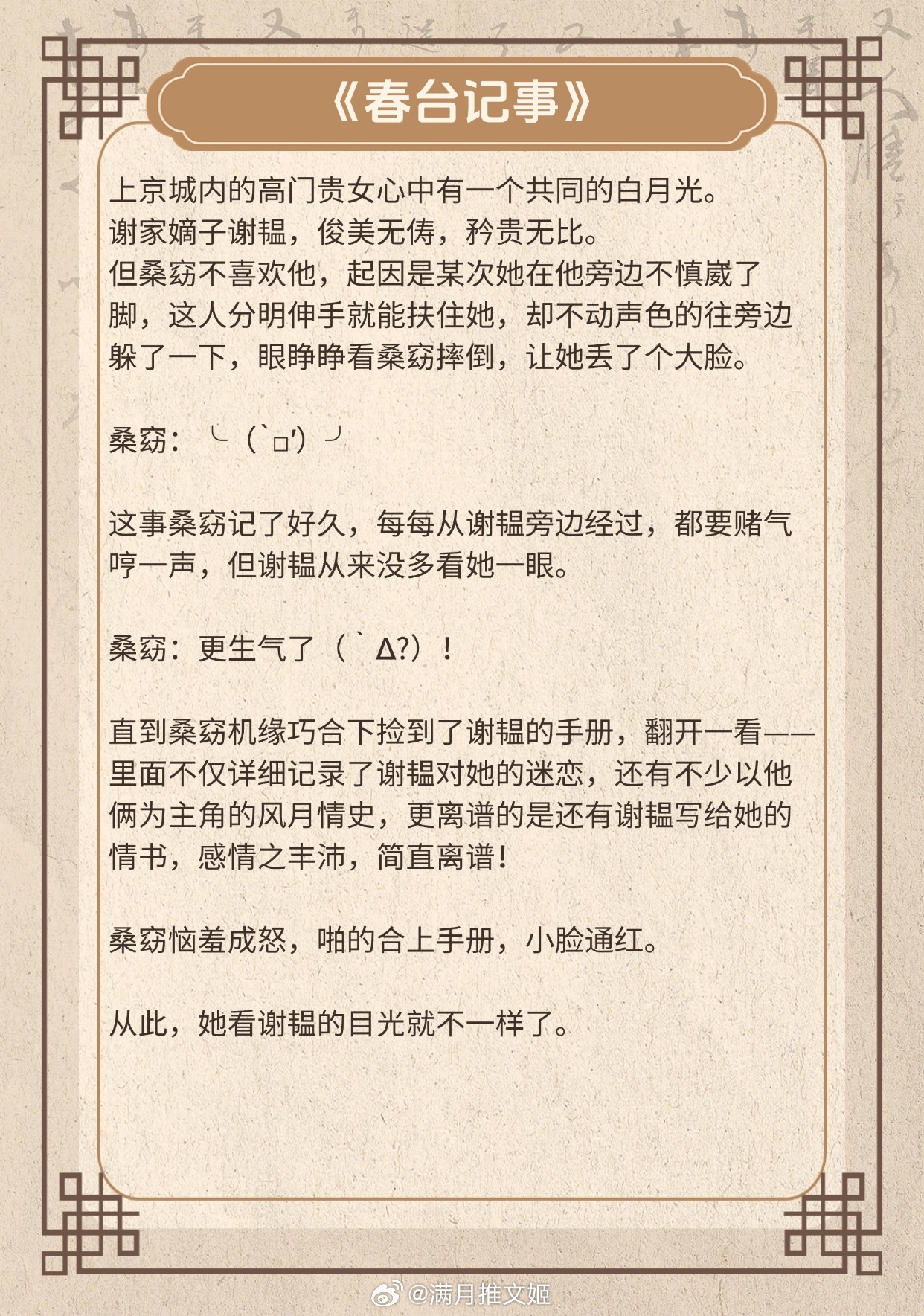 《樱笋时》作者:伊人睽睽《春台记事》作者:盛晚风《思无涯》作者:翘摇《日升青鸾》作者: 香草芋圆《夫君位极人臣后》作者:维和粽子《桃花折江山》 作者:白鹭成双推文言情小说推荐推文