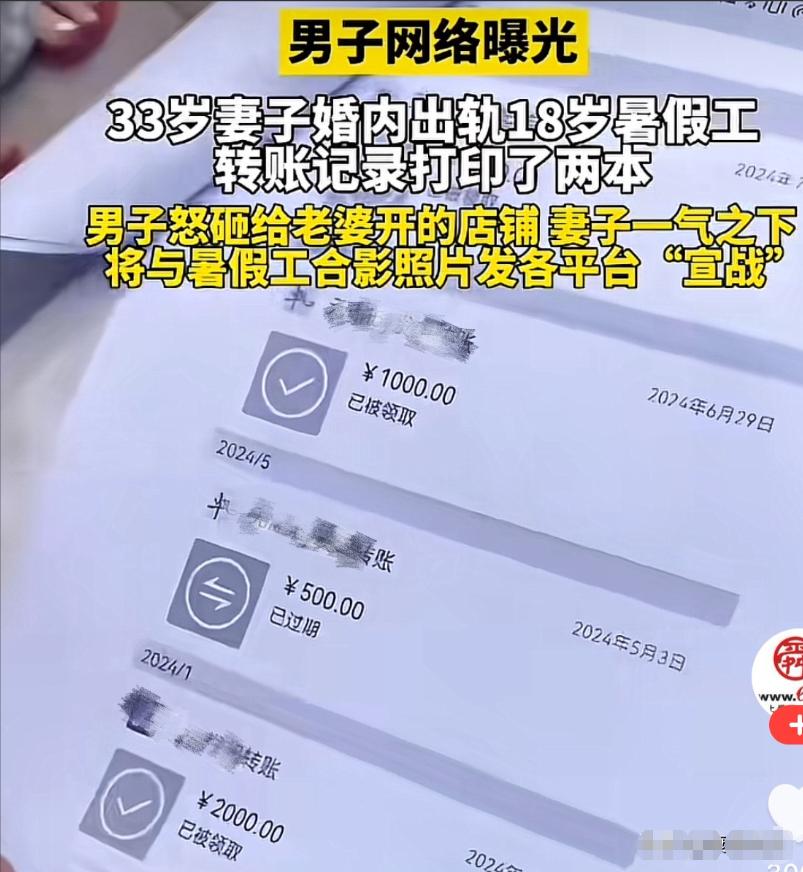 “人不要脸,天下无敌!”近日,江苏一起婚内出轨纠纷,在网络上引发全网热议,网友看完纷纷怒不可遏。一名33岁女子,在婚期间出轨了一名18岁的假期工,被丈夫当场抓到后,不仅没有丝毫愧疚,反而十分嚣张,公开宣称自己的小男友是“永动机”,还在网络上晒出两人的亲密合照,丝毫不在意丈夫的感受,也不顾及世俗的眼光。 丈夫被女子的嚣张态度彻底激怒,选择正面“应战”,在网络上公开了妻子包养小男友的全部转账记录,足足有两本厚,愤怒地指责妻子:“还没离婚呢,出轨竟这么嚣张!”此事发酵后,有网友发出灵魂拷问:“这个社会什么时候开始笑贫不笑娼的!” 事发在江苏某地,33岁的女子和丈夫结婚多年,两人有稳定的家庭和收入,在外人看来,是一对十分和睦的夫妻。女子平日里经营着一家小店,生意还算不错,经济相对独立,也有了更多可自由支配的时间和金钱。丈夫则是一名普通上班族,性格老实本分,平日里一心扑在工作上,努力赚钱养家,对妻子十分信任,从未怀疑过妻子的忠诚。 去年暑假,女子的小店因生意繁忙,人手不足,便张贴了招聘假期工的启事。18岁的男孩刚好高考结束,趁着假期出来打工,补贴家用,看到招聘启事后,便主动前来应聘。男孩年轻帅气,性格开朗,很快就被女子录用,成为了店里的假期工。 起初,两人只是单纯的老板与员工关系,女子平日里对男孩多有照顾,男孩也十分勤快,把店里的事情打理得井井有条。可随着相处时间越来越长,女子渐渐对这个年轻有活力的男孩产生了好感,而男孩也被女子的成熟魅力和经济条件吸引,两人很快就突破了道德底线,发展成了不正当的情人关系。 为了讨好小男友,女子对他十分大方,经常给他买衣服、送礼物,还频繁给男孩转账,用于他的日常开销和娱乐消费。男孩的学费、生活费,甚至是和朋友聚会的开销,几乎都由女子承担。两人趁着丈夫上班、外出的间隙,频繁见面,还偷偷拍摄了很多亲密合照,女子更是把这些合照存放在手机里,偶尔还会在朋友圈隐晦分享。 纸终究包不住火,女子的异常举动,渐渐引起了丈夫的注意。丈夫发现,妻子最近经常晚归,手机也设置了新的密码,平日里对自己十分冷淡,甚至不愿意和自己多说一句话,而且家里的开支也变得异常庞大,很多钱都不知所踪。带着疑问和不安,丈夫开始悄悄留意妻子的行踪。 一天下午,丈夫提前下班回家,本想给妻子一个惊喜,却在自家卧室里,撞见了妻子和那名18岁假期工的亲密场景。眼前的一幕,让丈夫彻底崩溃,他万万没有想到,自己真心对待的妻子,竟然会背着自己,和一个比她小15岁的假期工出轨。 被抓到现行后,丈夫气得浑身发抖,当场和女子争吵起来,要求女子和男孩断绝关系,好好回归家庭。可让丈夫没有想到的是,女子不仅没有丝毫愧疚和悔改之意,反而十分嚣张,当场和丈夫叫板,直言自己就是喜欢小男友,还公开宣称:“他比你年轻、比你有活力,就是我的‘永动机’,我就是要和他在一起。” 争吵结束后,女子非但没有收敛,反而变本加厉,竟然在网络上晒出了自己和小男友的亲密合照,配文十分暧昧,丝毫没有顾及丈夫的感受,也不在意网友的看法。照片发出后,很快就引发了网友的关注,不少人留言指责女子的做法,可女子却毫不在意,甚至还回复网友,反驳那些指责她的人。 丈夫看着女子的嚣张模样,又看到网络上的议论,内心的愤怒和委屈彻底爆发。他忍无可忍,决定不再隐忍,选择正面“应战”。随后,丈夫整理了妻子包养小男友的全部转账记录,这些记录涵盖了微信、支付宝转账,还有银行流水,他把所有转账凭证打印出来,足足有两本厚,清晰地记录着女子给小男友的每一笔开销,小到几十元的奶茶钱,大到上万元的转账,一目了然。 丈夫将这些转账记录发布到网络上,配文愤怒地指责妻子:“我们还没有离婚,你就背着我出轨,花着我们的夫妻共同财产,包养小男友,竟然还这么嚣张,丝毫没有把我放在眼里,也没有把婚姻当回事!” 此事在网络上发酵后,迅速引发了全网热议,网友们纷纷发表自己的看法。有网友指责女子不知廉耻,背叛婚姻、践踏道德,拿着夫妻共同财产包养小男友,还如此嚣张;也有网友同情丈夫的遭遇,觉得他太委屈,遇到了这样不负责任的妻子;还有网友发出灵魂拷问:“这个社会什么时候开始笑贫不笑娼了?难道有钱就可以为所欲为,不顾道德和底线吗?” 婚姻的本质是忠诚与责任,无论男女,都应坚守婚姻的底线,尊重自己的配偶,珍惜来之不易的家庭。婚内出轨不仅会伤害夫妻感情,破坏家庭和睦,还可能侵犯对方的财产权益,触犯法律。网络不是法外之地,也不是肆意妄为的地方,任何违背道德、践踏底线的行为,都会遭到社会的谴责,也终将承担相应的后果。 所谓“笑贫不笑娼”,从来都不是这个社会的主流价值观。真正被尊重的,从来不是金钱和享乐,而是坚守道德、恪守底线、懂得责任与担当的人。婚姻不易,且行且珍惜,切勿因一时的冲动和欲望,亲手毁掉自己的家庭,最终自食恶果。 对此,你怎么看?