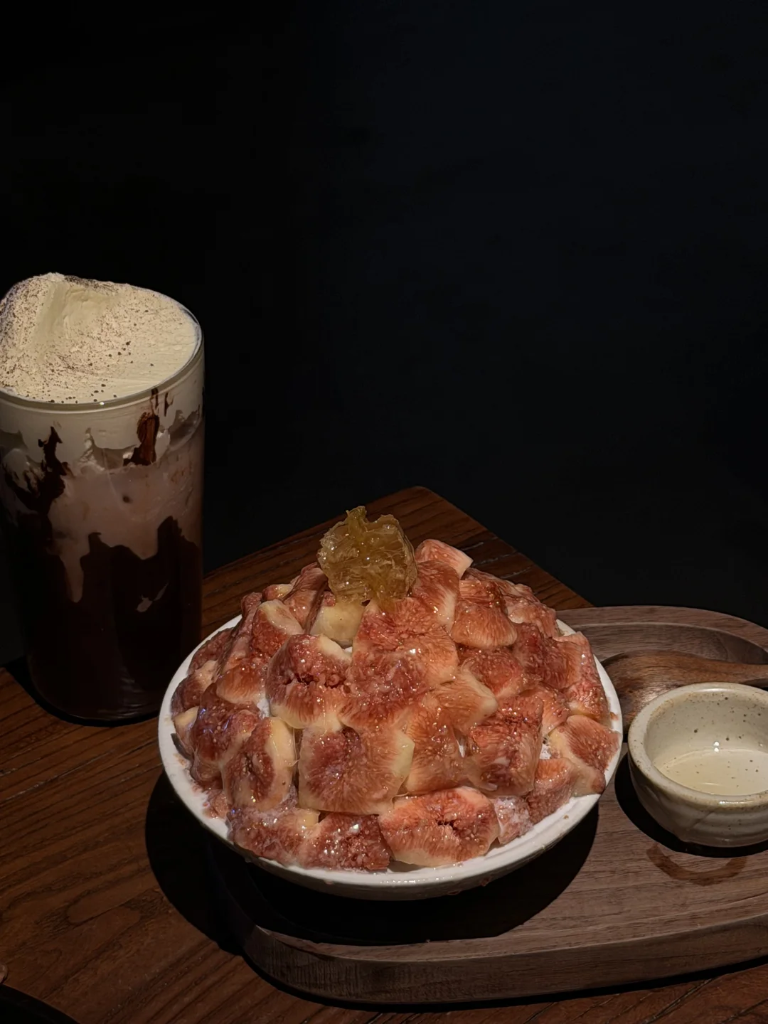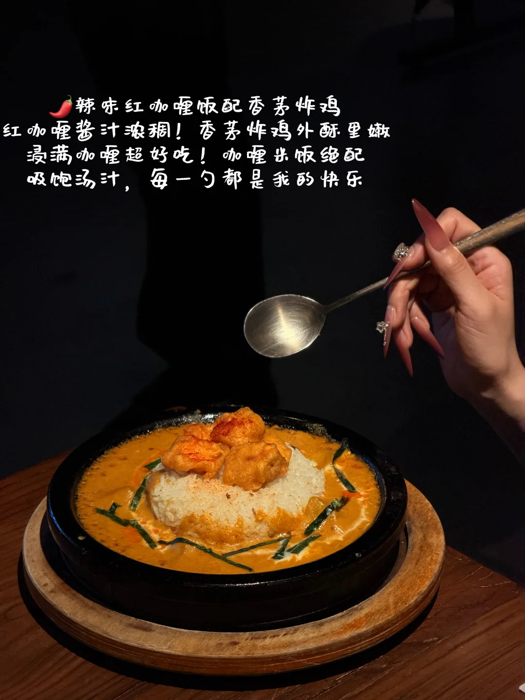 每隔一阵子就想吃他家韩料!!每次都觉得幸福感爆棚!不想排队就错开饭点!真的好吃✨✨✨ 🍛辣味黄咖喱饭配炸鸡!黄咖喱超浓郁,微辣哦!炸鸡带了点香茅味道!巨巨巨下饭,大口吃超满足! 🍧无花果雪冰 | 超新鲜无花果➕蜂蜜🍯!超好吃 🍝马苏里拉芝士辣炒鸡 | 经典中的经典,鸡肉嫩,微甜带辣➕糯叽叽的年糕! 🖤第一次吃黑芝麻雪冰就爱上了!巨浓郁!核桃粉➕黑芝麻粉➕糯叽叽QQ弹弹的麻薯~狠喜欢! 🥹没想到工作日人也满满的! 排队1h也值了!!