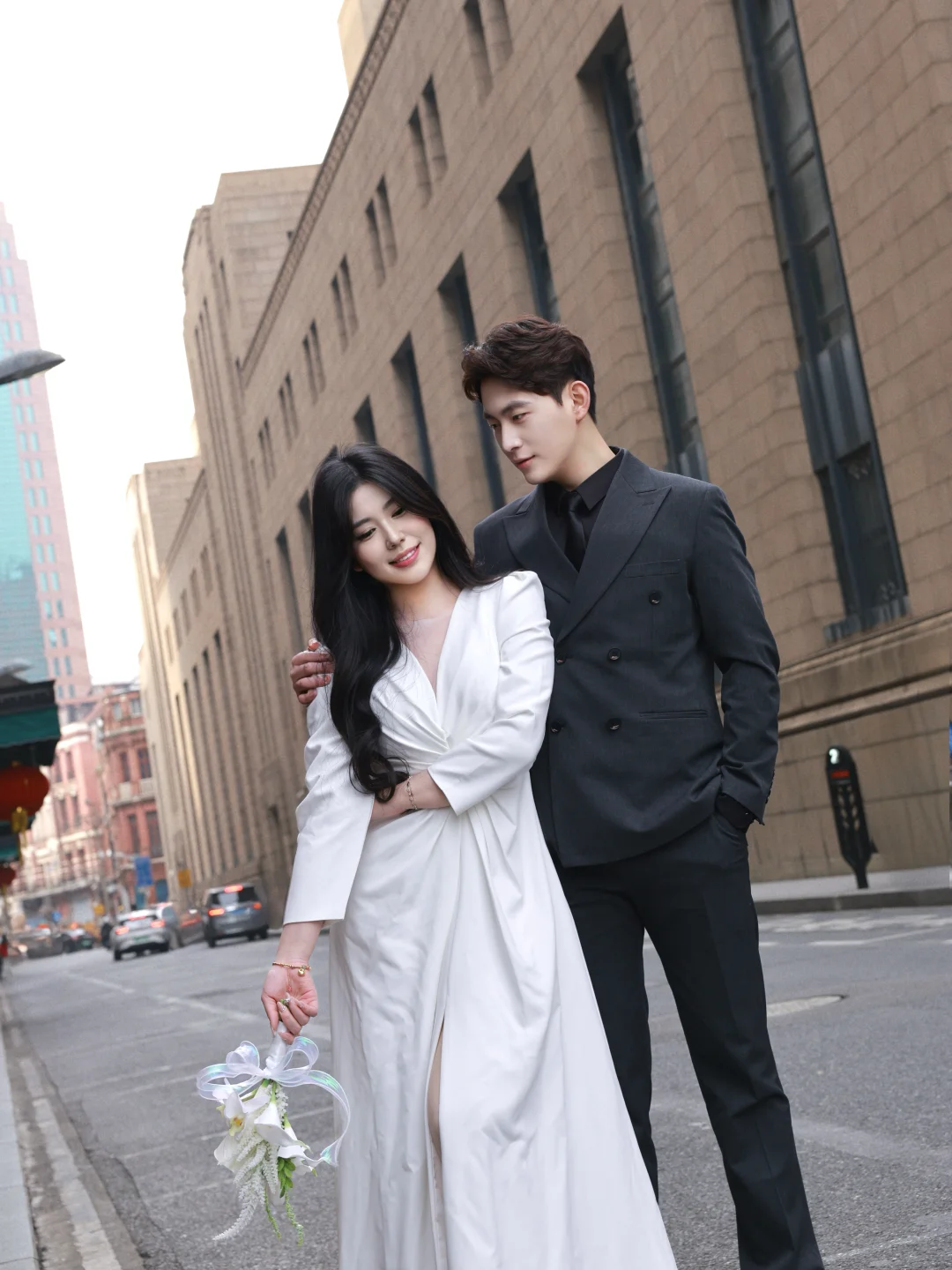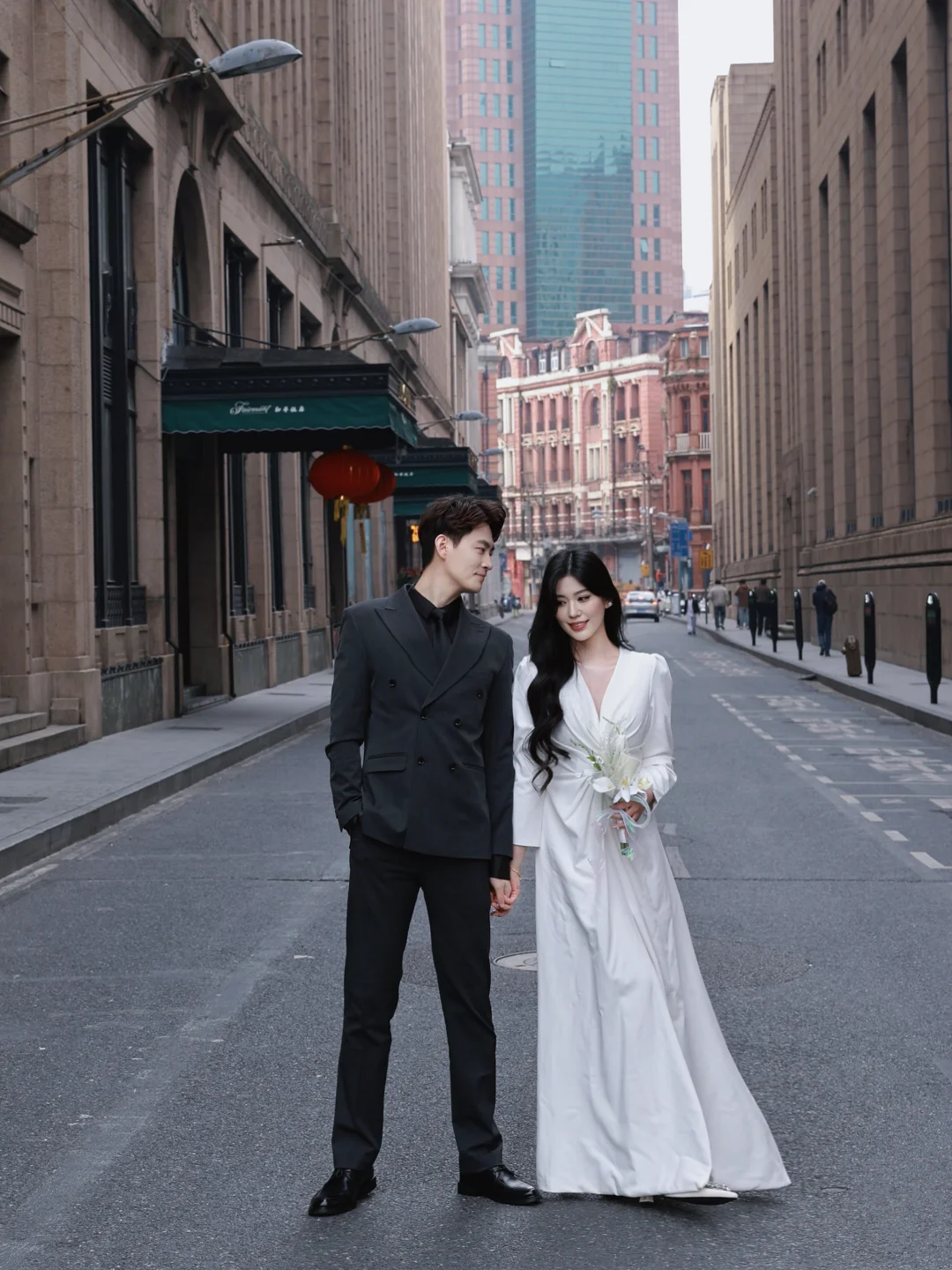 窝藏了好久的照片终于发送 领证那天📝从民政局-外滩一整条路线都很好拍 和平饭店真的是必拍的选项 运气很好找到了非常好的跟拍!!!! 跟拍真的很重要 经常拍那条线的摄影师知道有哪些点位出片 节省了很多的时间(寒冬里穿薄薄真的很需要效率 氛围感max了