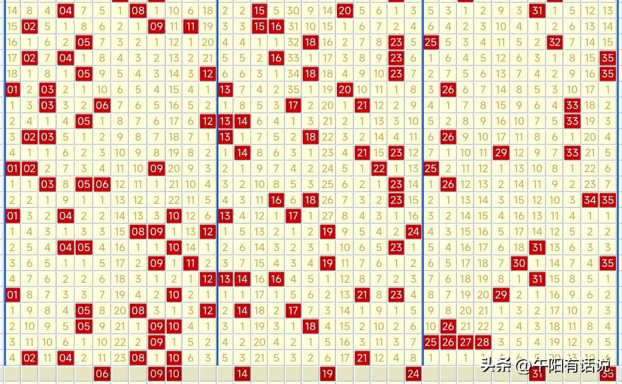 大乐透26025期号码共享,前区关注4、9尾,后区防双小号码反弹 开奖快讯 超级大乐透26024期开奖号码为: 02 04 08 10 21 + 09 12 前区号码走势 在上期前三区号码出现大爆发,开出四个奖号之后,本期前一区也不甘示弱,也出现了强势反弹,同样开出了四个奖号。 上期前三区所开出的四个奖号,是以四连号的形式开出,而本期前一区开出的四个奖号,则是分为两组间隔码开出。这两组间隔码分别为02-04和08-10,且均为偶数号码。 最近一段时间,前一区号码整体热度较高,并且奖号呈现出前半区和后半区交替热开的格局。 前一段时间奖号以前半区开出为主,最近一段时间,后半区号码出现回热,预计接下来后半区继续热开的概率较大。同时,由于本期前一区开出了两组间隔码,并且热度较高,接下来需谨防夹码开出。 后区号码走势 本期后区奖号开出了双0路号码组合09-12,且属于双大号码。最近一段时间,一大一小号码组合处于回调期,走势较冷。 双大和双小号码呈现出热开状态,尤其是双小号码出现了连续密集性开出。本期开出了双大号码,接下来需谨防双小号码出现反弹。 大乐透26025期晒号 前区号码: 06 09 10 14 19 24 31 35 后区号码: 01 02 05 精选一注 09 10 14 19 31 + 01 05