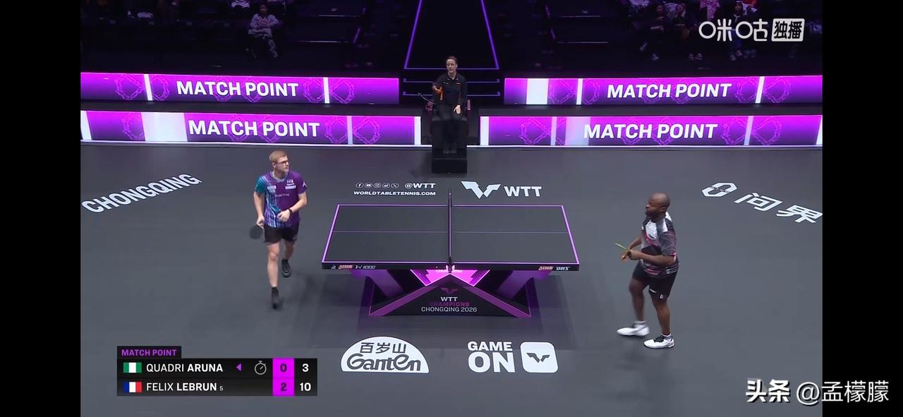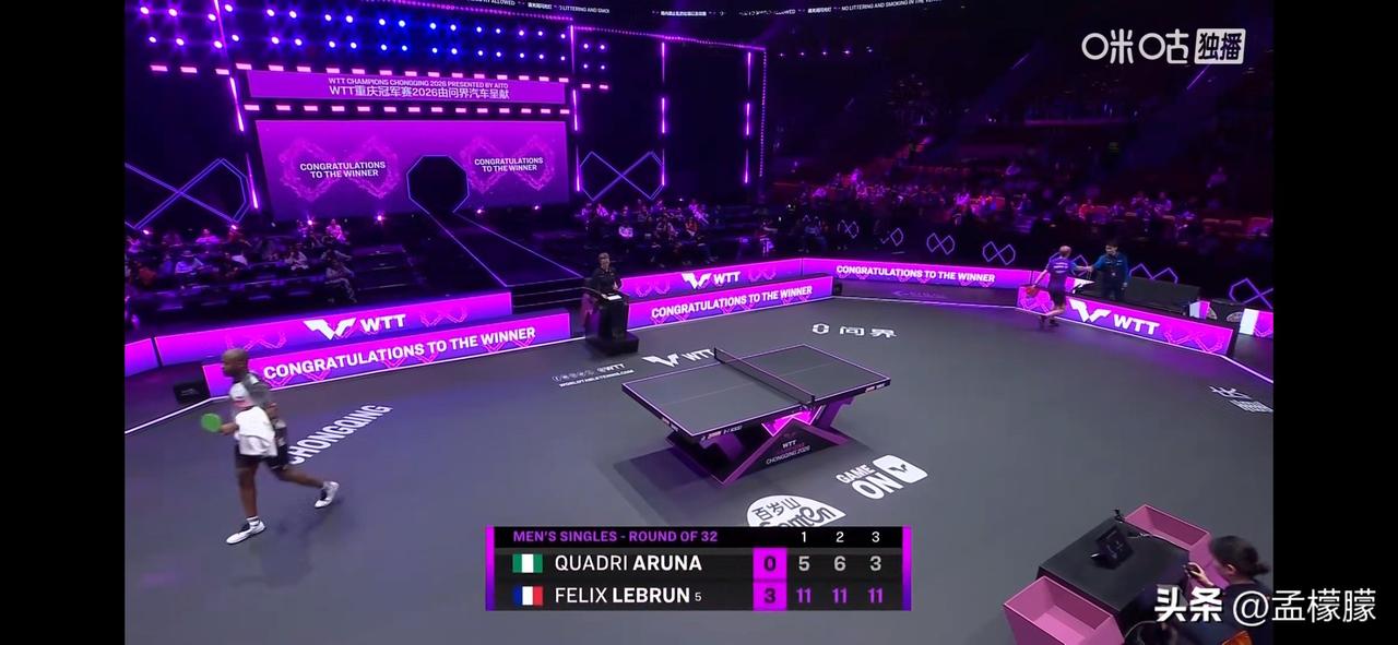 男单1/16决赛: 费利克斯·勒布伦(FRA)3-0夸德里·阿鲁纳(NGR)【11-5,11-6,11-3】
