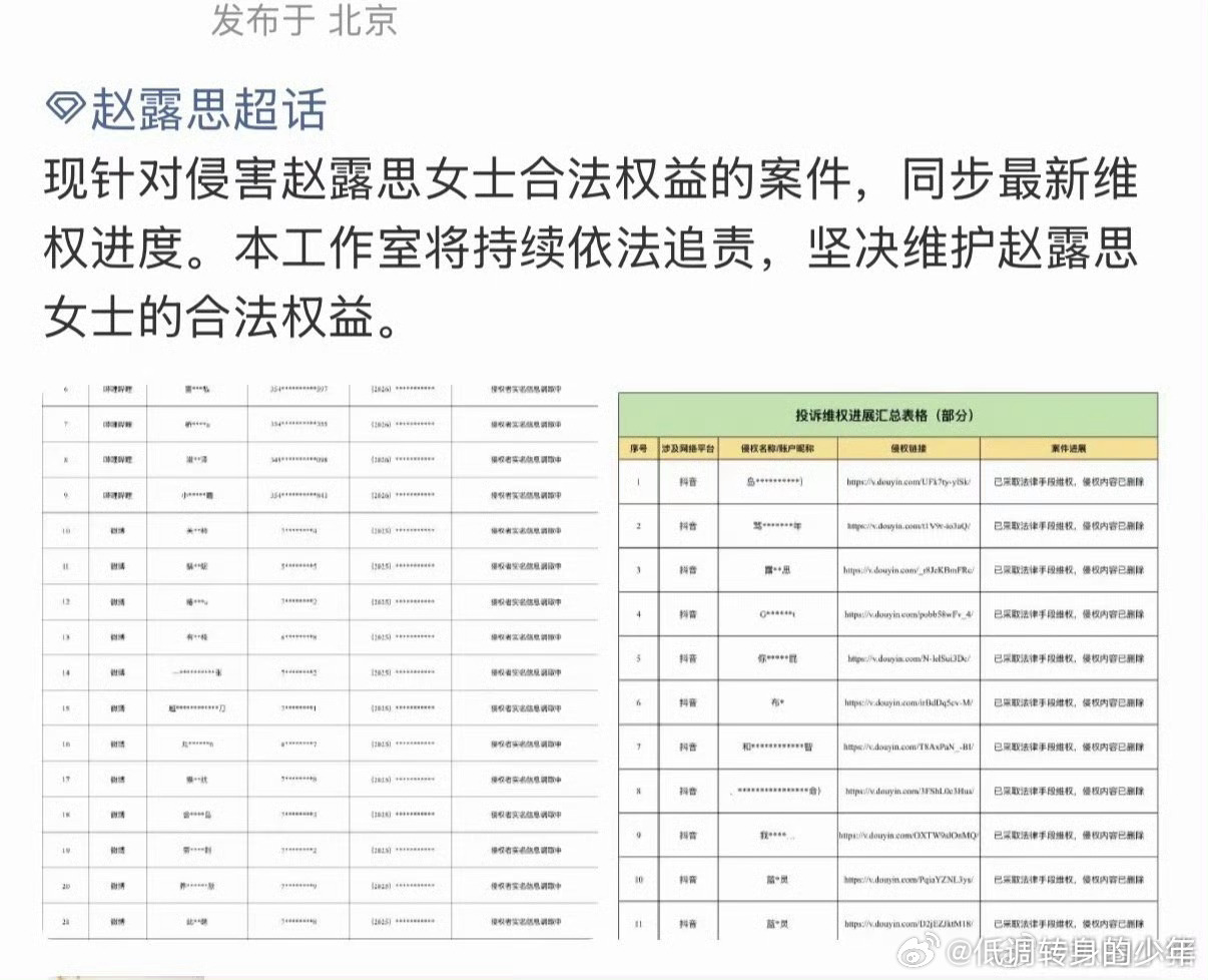 赵露思工作室全平台告黑进展!好长~主要集中在抖!其次vb