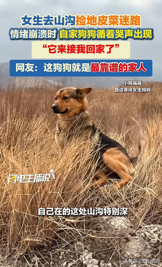 “太有灵性了!”3月6日,山西,一女子去山沟里捡地皮菜,结果迷路了,当时手机也没信号,女子一下慌了神,直接大哭了起来,没想到在这时,她家的小狗循着哭声找了过来,看见小狗的那一刻,女子瞬间心安,最后安全到家!网友:高低整个鸡腿![太阳] 3月6日,山西一处山沟里,一个女人坐在乱石堆旁哭了很久,四周只有风声。 她原本只是趁着春光好,进山捡点地皮菜。 这种贴着湿地生长的野菜,开春时节最嫩,焯水凉拌,带着泥土气,是很多山西人的童年味道。谁也没想到,就为了这一把野菜,她走着走着山路就断了。 手机没有信号,喊了几声,没有回应,只有自己的声音在沟壁上弹回来。 越走越陌生,越站越心慌,她最后坐下来哭出了声,哭声顺着山风飘出去,飘得比她想象的更远。 谁也没想到,家里的狗福福在院子里突然停下来,侧着头,耳朵竖起来,然后就往门口走,出了院子,上了山路,一路小跑进了山沟。 没人唤它,没人带它,它自己去的。 狗的听觉能捕捉到百米外人耳听不见的声音,但更难解释的,是它怎么从那么多种声音里,单单辨出了她的哭声。 也许是气味,也许是某种只有它们之间才有的默契,总之它找到了。 女人抬头,看见草丛动了,福福从里面钻出来,跑到她脚边转圈。她愣了一秒,然后抱住它,又哭了一场,这次是因为不怕了。 跟着狗走,路就出来了。 这狗是真能处,有事它真上啊! 有网友说:“我家狗也干过类似的事。有次我在小区跑步低血糖,头晕蹲在路边,我家那平时只会傻乐的憨货,急得围着我直转圈,看见有人路过就冲过去叫两声再跑回我身边,来回了好几趟,最后成功引来了一位邻居阿姨帮我。那一刻觉得,狗粮真没白喂。” 动物不会说话,但那份灵性和忠诚,有时候真的超乎想象。 还有人感慨,有些名贵犬是好看,但论起看家护主、通人性的本能,还真不一定比得上咱们的中华田园犬。 福福’这认路和寻声的能力,不培训一下当搜救犬预备役可惜了,这是天赋啊! 不过,笑过感动过,大家也没忘要注意安全,这次是万幸,狗子立大功。 但进山最好还是结伴,带个口哨、充电宝,穿颜色鲜艳的衣服。不能总指望这样的奇迹,安全准备