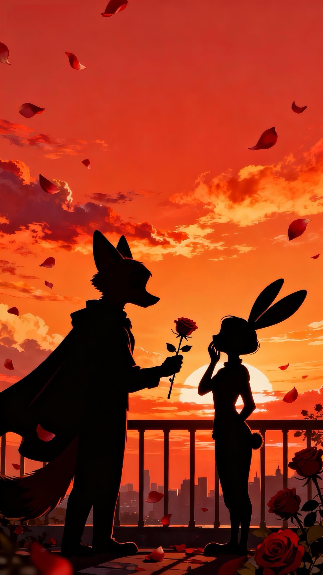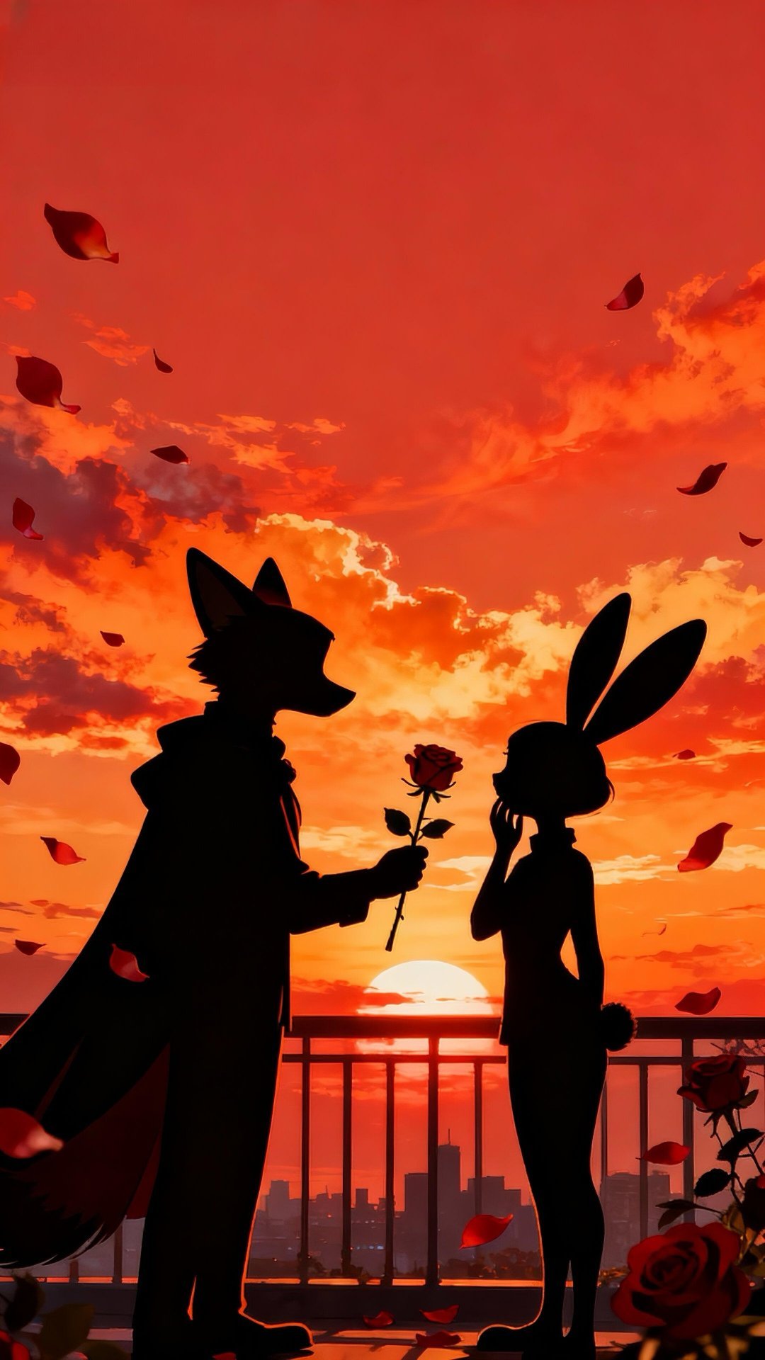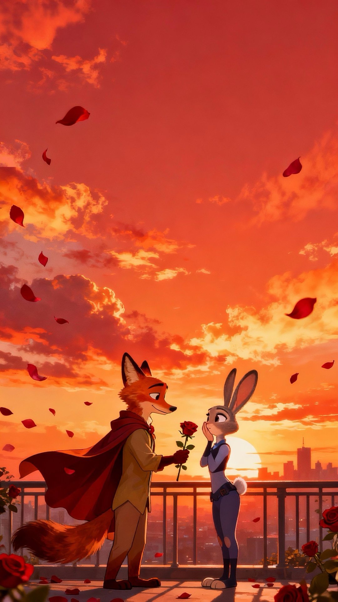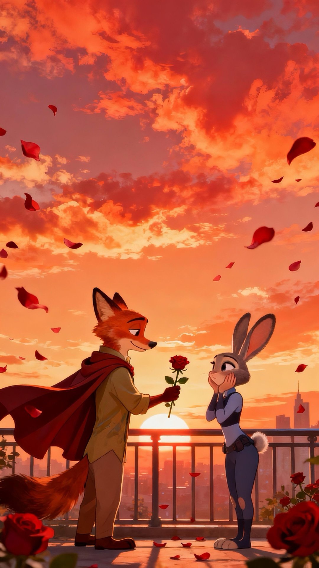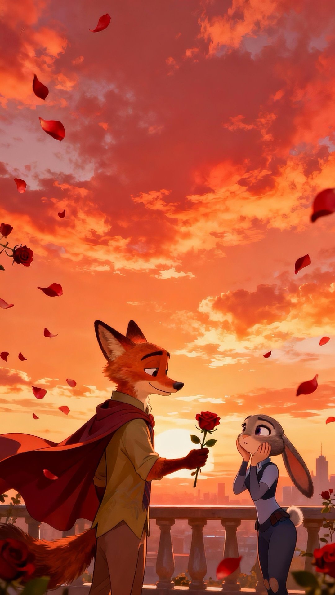 🦊🐰|疯狂动物城|壁纸落日与玫瑰,是狐尼克给朱迪的偏爱💛✨ 𝗕𝗘 𝗬