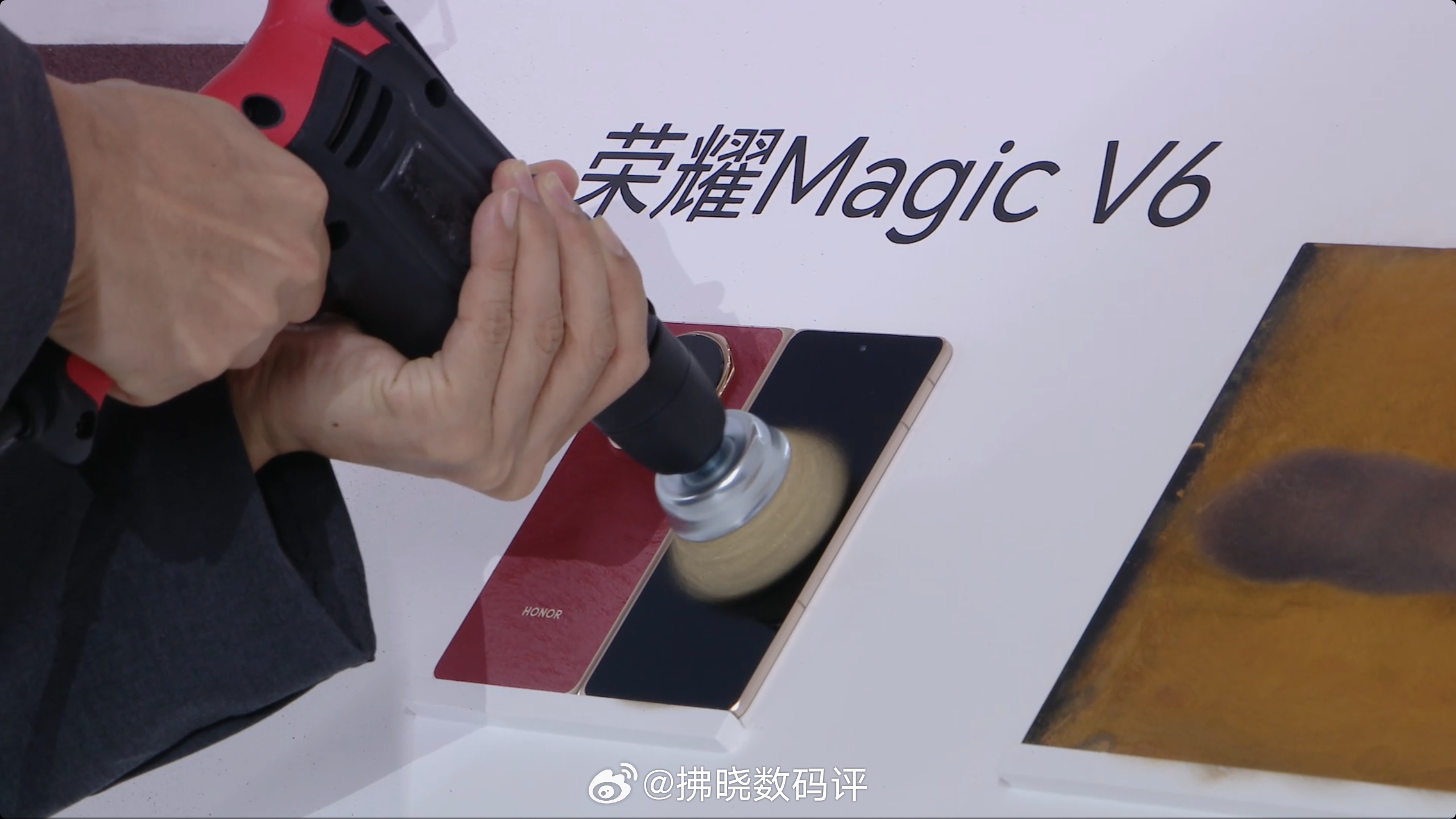 不是,现在发布上没点硬核测试就不能开了是吗?要知道,这可是一台折叠屏手机,硬刚屏幕硬度不说,还现场直接上电钻开测。这次“氮化硅”引入手机屏幕,结合5600层氮化硅镀膜和芯片级高精工艺,防磨性能提升3倍。可见荣耀Magic V6所采用的这块“至臻黑钻屏”实力果然名不虚传!荣耀Magic V6 荣耀Magic V6折叠大满贯 荣耀折叠新机送内外双屏宝 荣耀发布会
