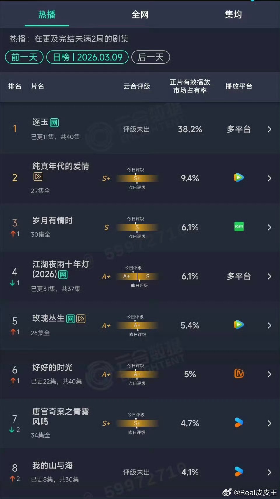逐玉云合 逐玉云合38.2%,腾讯拉新周榜第一,cvb首播卫视第一,稳稳的很安心