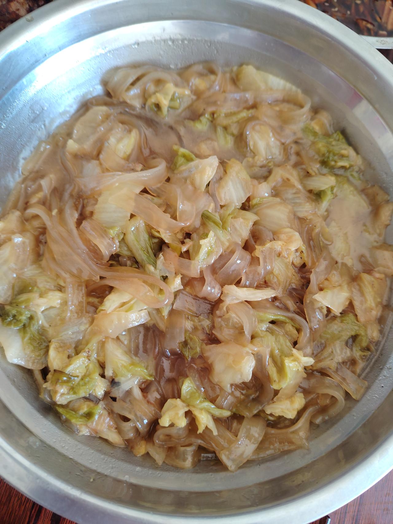 记录我的2026今日午餐,荤素搭配,营养均衡,过年炖的肉片,拌菠菜,自己家灌的肠。白菜炖粉条,蒸的米饭,生活还算可以吧?