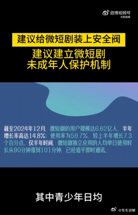 建议给微短剧装上安全阀 全国人大代表赵冬苓建议,微短剧执行“先备案、后开机”,未备案不得拍摄、不得上线,堵住监管漏洞。