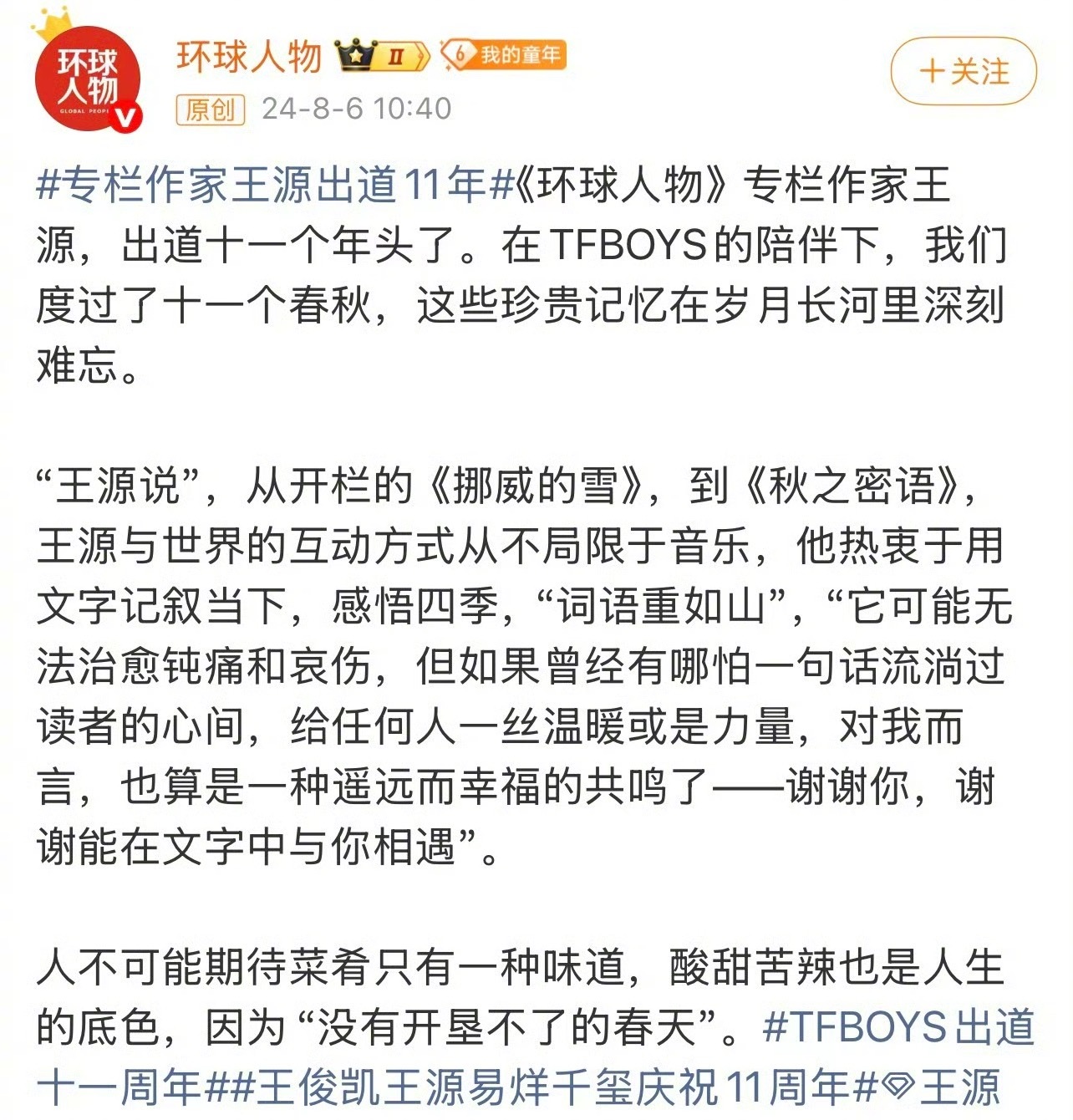 原来这些爆火的文案都是王源写的救命!我源的文笔真的杀疯了!六年《环球人物》专栏作家不是白当的,笔杆子底下全是宝藏!从《挪威的雪》写到《秋之密语》,他把四季、把当下写得那么透彻,每一句都能直接进作文素材库,太绝了!