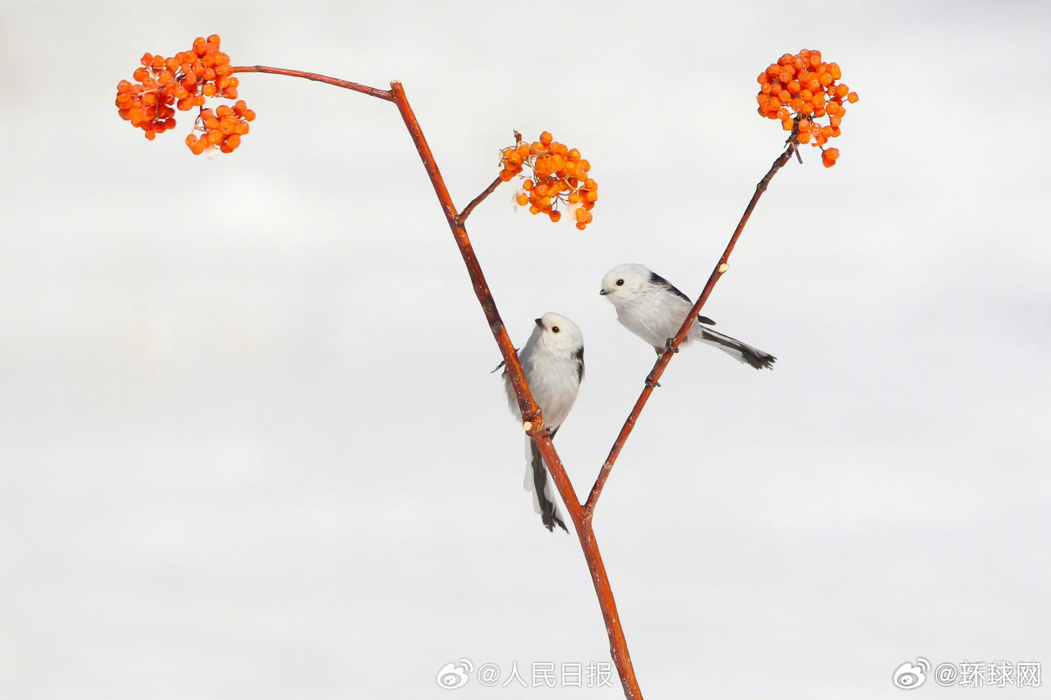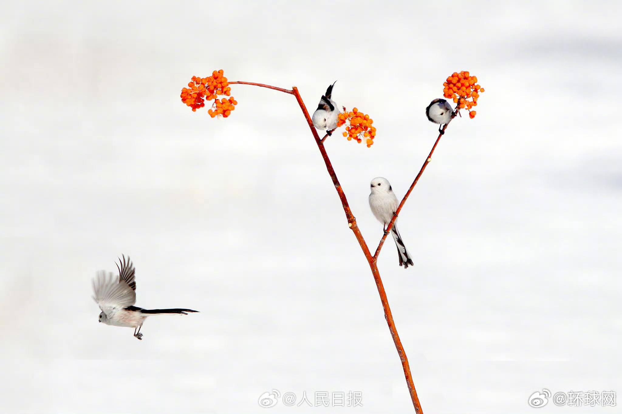 【超可爱!#现实版花鸟图集请查收#】#雪地小鸟嬉戏图好可爱# 近日,黑龙江大庆城市森林公园雪地林间,小鸟在枝头嬉戏,画面灵动可爱。网友:好像是花鸟图照进了现实! (人民日报)