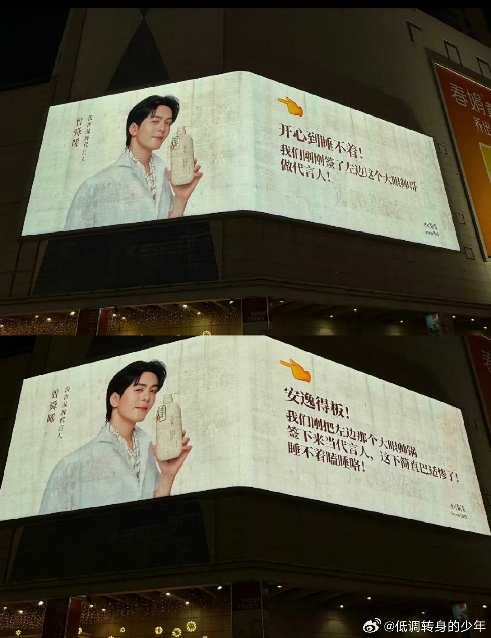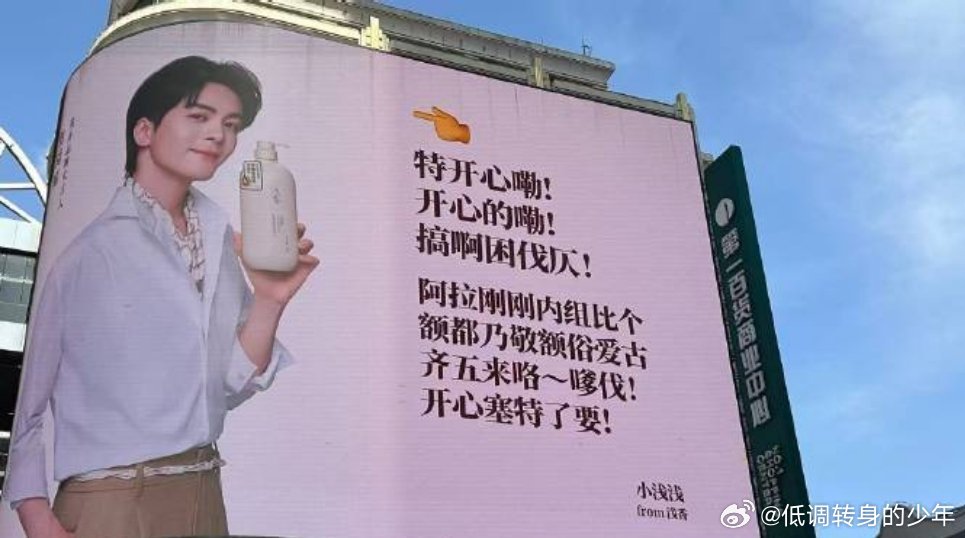 曾舜晞浅香品牌代言人 曾舜晞地广大屏 还有各地方言版 浅香真的好满意这个大帅哥代言人吧 长沙方言版!“嬲噻得困不着!我们刚刚签哒左边咯个眼睛大大的靓仔做代言人!”曾舜晞浅香品牌代言人