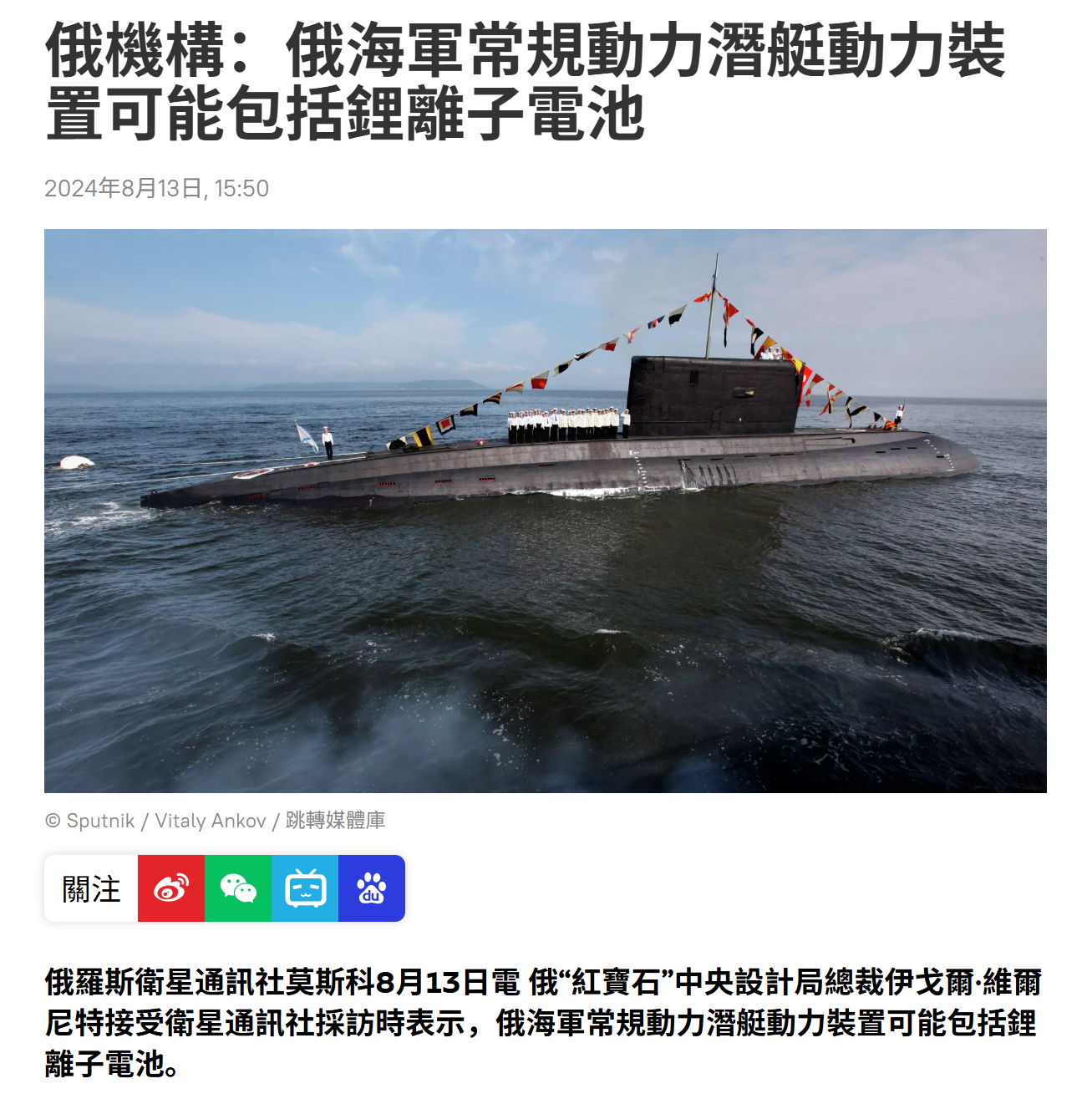 烽火问鼎计划每天认识一件兵器 “红宝石”中央船舶设计局称为677M型“拉达”级潜艇预留了锂电池接口,可在后续升级中更换锂电池,在一定程度上提升潜艇的续航能力。此前,俄罗斯联邦的新一代533毫米重型电动线导鱼雷UET-1已经开始使用锂电池。