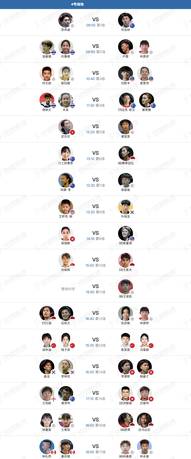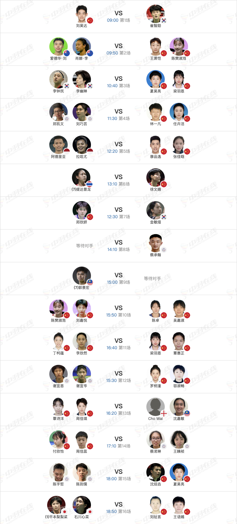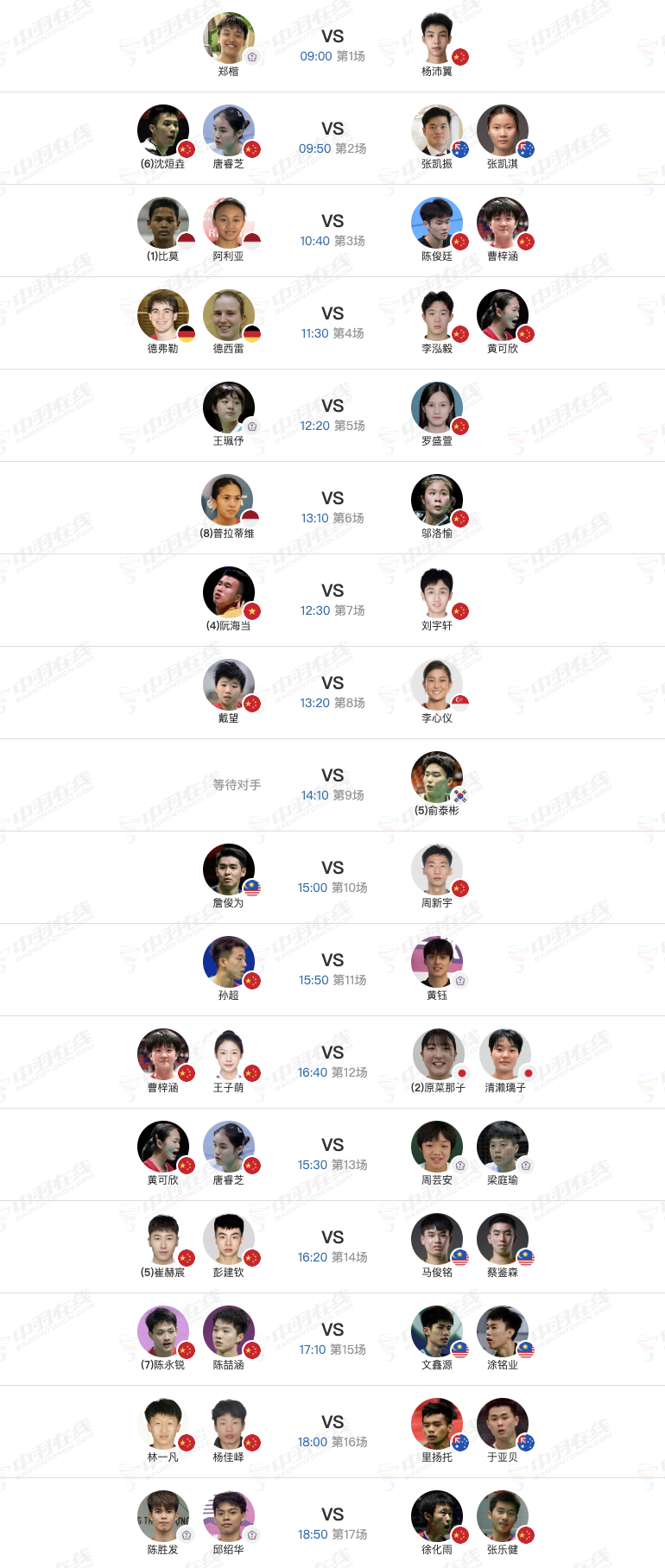 2026年瑞昌羽毛球大师赛 3月11日各单项32进16➕16进8赛程,早上9点开赛:
