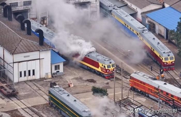 火车真的会喷火的。图中的地点貌似是在广西柳州的机车厂,一辆刚厂修完正在试车的东风4dk型内燃机车正在启动时,车顶的两根排烟孔竟然冒出了火花。随着火花过后又冒出了滚滚的浓烟,场面几乎堪比蒸汽机车了。看来内燃机车的排放比起汽车污染要厉害多了。