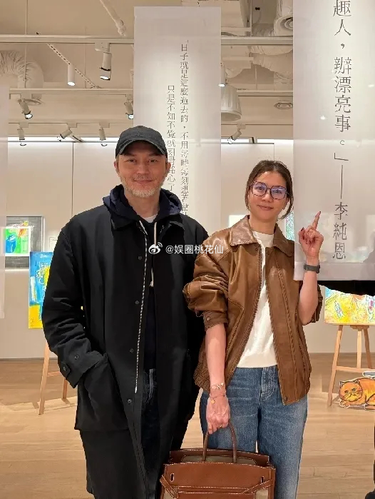 张智霖也变白胡子老头了,不过老了也很帅,最近他和老婆袁咏仪在香港看展,夫妻俩都是