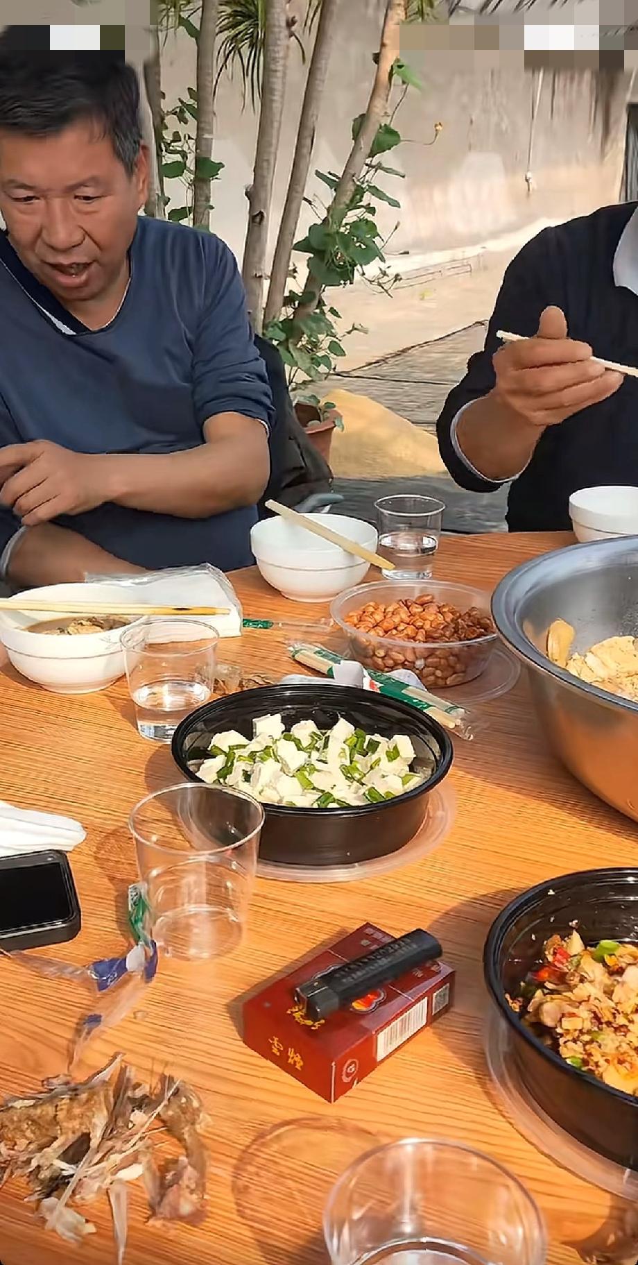 于谦在北京自家四合院请朋友吃饭,菜品简单,他竟然抽20多块钱的烟,皮肤发皱,像70多岁! 3月10日,有网友晒出自己和朋友在于谦家吃饭的画面,表示于谦在北京的家里招待了朋友,跟着他已经连着吃了两天肉了。 前几天,德云社在四川成都的分店开业,于谦盛装出席,参加完活动之后,他马上就回到北京的家里了。 在家里的他非常有松弛感,穿了一件白色的T恤,有明显的大肚腩,尤其坐下的时候,肚子上能看到有游泳圈。 他发型也顾不上打理了,就跟鸡窝似的,好像刚睡醒,好搞笑,竟然炸毛了。 他胸前别了一副近视眼镜,身上没戴任何首饰,没戴翡翠吊坠,没戴戒指和手镯,看来他只有出门的时候才戴这些彰显身份,回家以后就不会再包装自己。 于谦家的桌子很简单,桌子上摆的菜看着也简单,就和普通人家的家常便饭差不多,没有什么特别之处。 这菜看着不怎么下饭,于谦没多吃几口,而是和旁边的朋友聊天,这些朋友好像也不是什么名流,就是普通人,看来于谦是什么饭局都参加。 另外,网友爆料,于谦抽的是20多块钱一包的软红中南海,相当接地气了。 可惜他脸上的皮肤皱皱巴巴,老年斑特别重,皱纹也多,像70岁的,网友说,看他这脸就知道他每天至少半斤白酒。