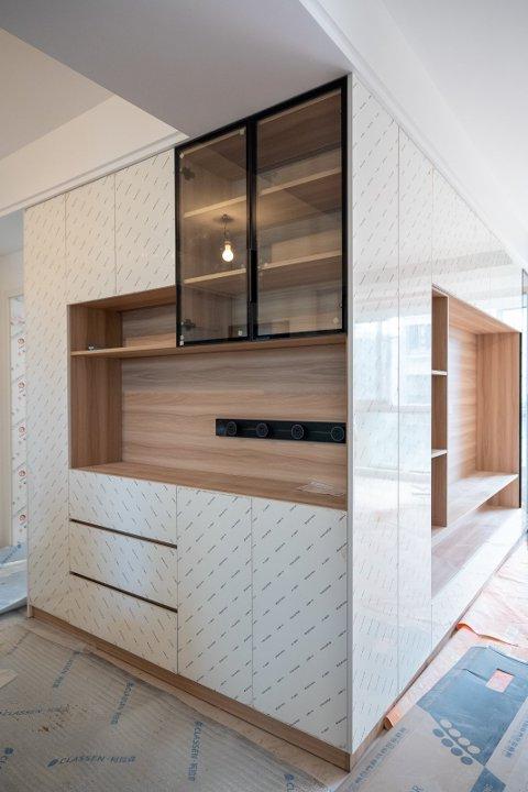 今年过来看沪尚茗居装修进度,越看越觉得,这次装修最明智的决定就是把电视柜和餐边柜做成一体的。之前总担心客餐厅连着会显乱,没想到沪尚茗居这样设计出来,空间显得通透又连贯。中间留了放机顶盒和路由器的位置,再也不用乱糟糟地走线,旁边的玻璃柜门我超爱,打算用来摆些好看的杯子和摆件,有点展示柜的感觉了。下方的抽屉和封闭柜体,刚好能藏起家里的零食、遥控器、孩子的绘本这些零碎。现在保护膜还没撕,但能看出做工很规整,拼接处也很严实。站在客厅看过去,整个客餐厅的动线特别顺,不用再单独摆餐边柜,四舍五入也算是省了不少空间呢~