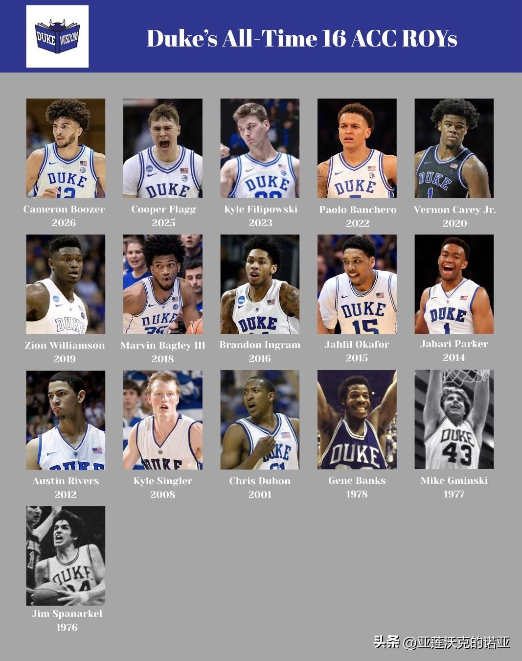 前锋Cameron Boozer是杜克大学队史第20位ACC联盟年度最佳球员,也是第16位最佳新人,大四内线Maliq Brown是第六位获得年度最佳防守球员的杜克球员,2026年nba选秀 ESPN记者Vince Goodwill透露在与NBA高管交流后,他们认为布泽尔拥有多届全明星的天赋,精英级别的二当家球员。