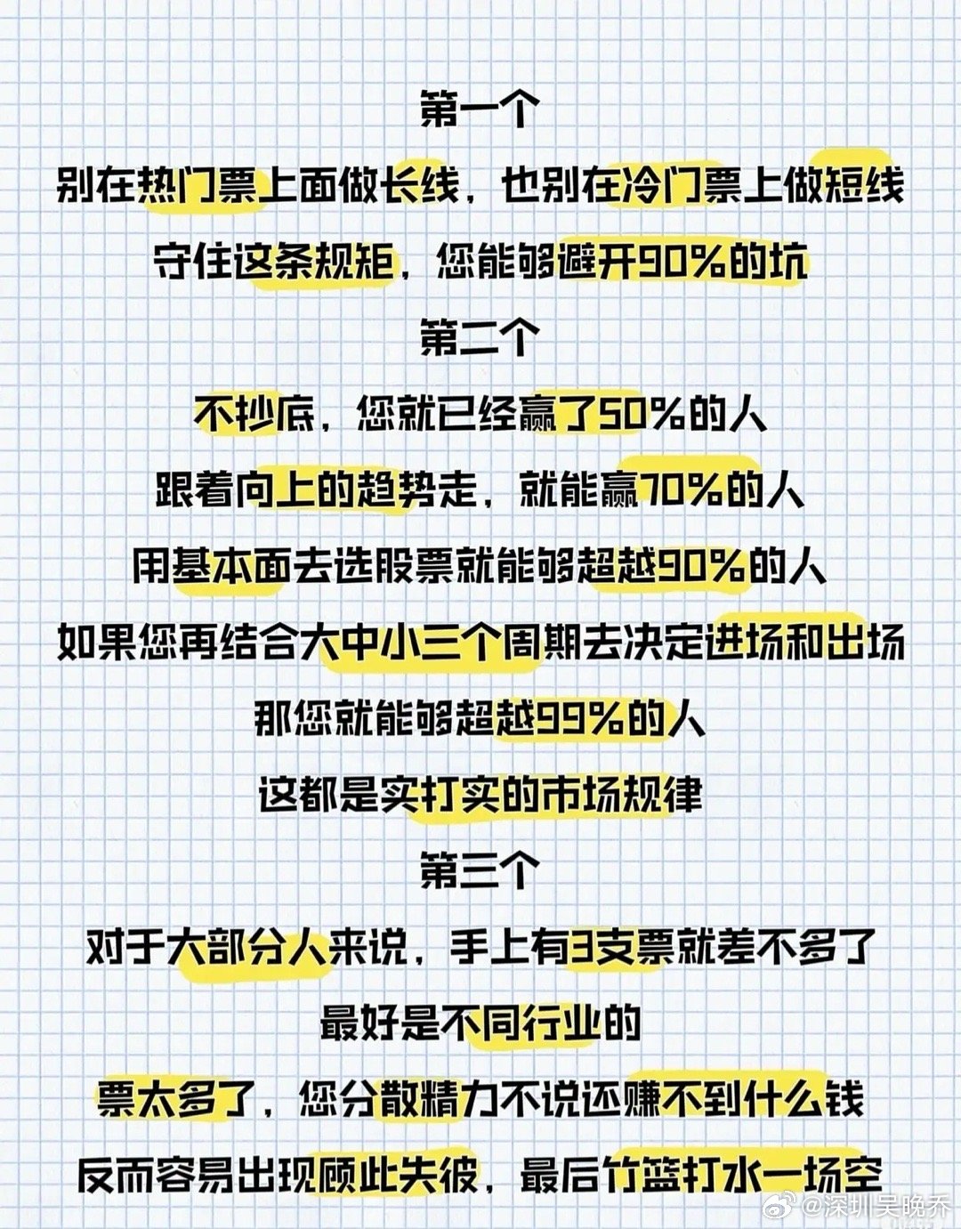 “炒股不难,悟透7句话即可”,7句话的关键要点如下:建议收藏研究!1. 选股周期