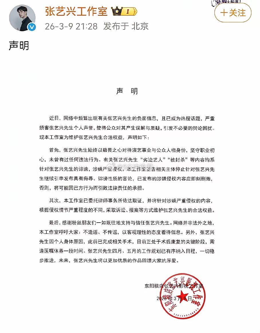 粉丝可以放心了张艺兴工作室出来辟谣了,关于“劣迹艺人”“被封杀”都是谣言,是诽谤。已经联系律师取证,这个回应速度很慢,事情已经发酵快一天了,回应才姗姗来迟。工作室公关首先就是速度,早点公布,哪怕是粉丝和路人打擂台,也好过只有一种声音。你觉得张艺兴是一个什么样的人 ?