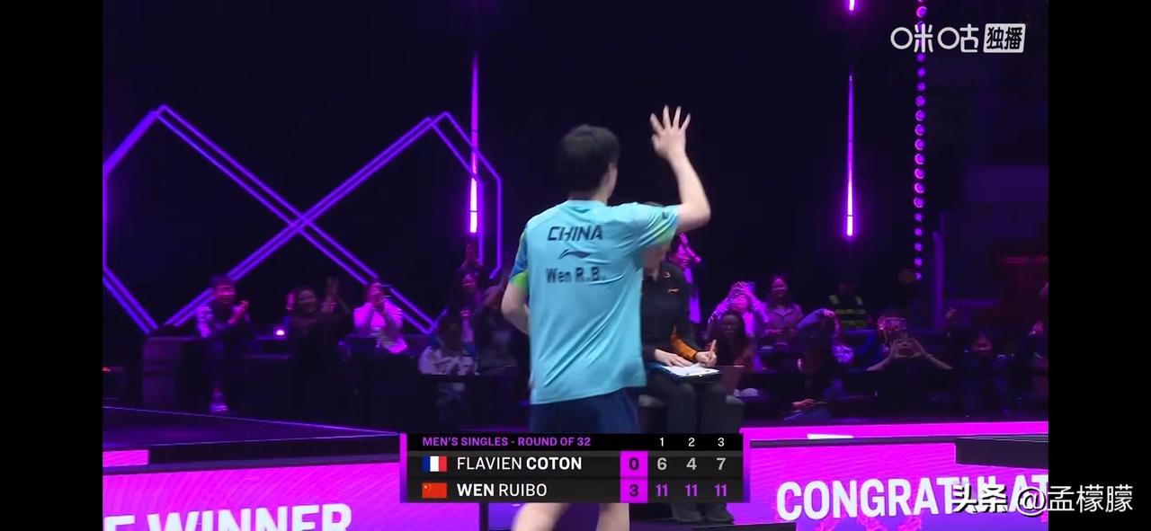 后起之秀的青春对决!中国小将温瑞博3-0横扫法国小将科顿,晋级16强。 WTT冠军赛重庆站丨男单1/16决赛 温瑞博🇨🇳3-0弗拉维安·科顿🇫🇷【11-6,11-4,11-7】 国乒小将温瑞博 国乒温瑞博