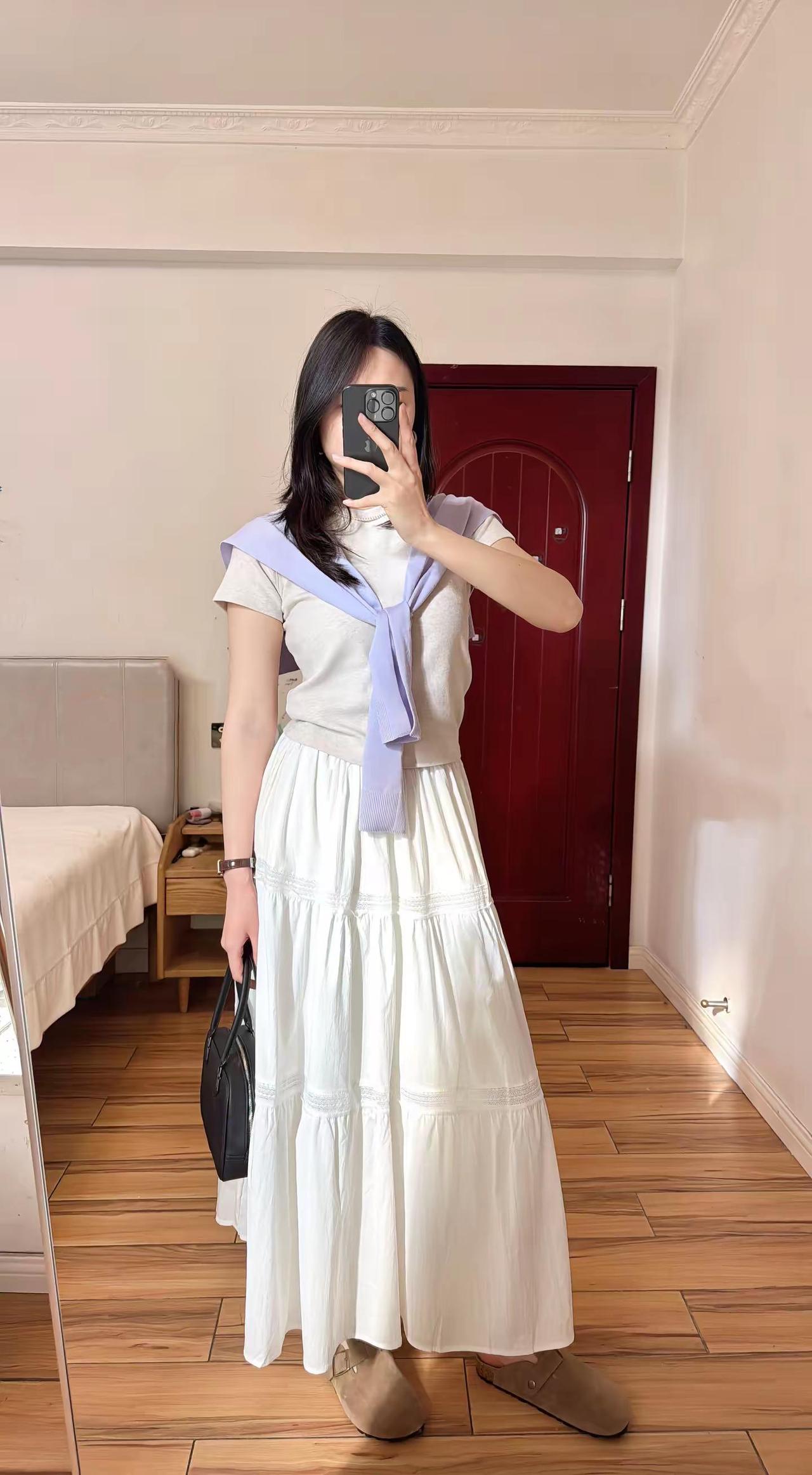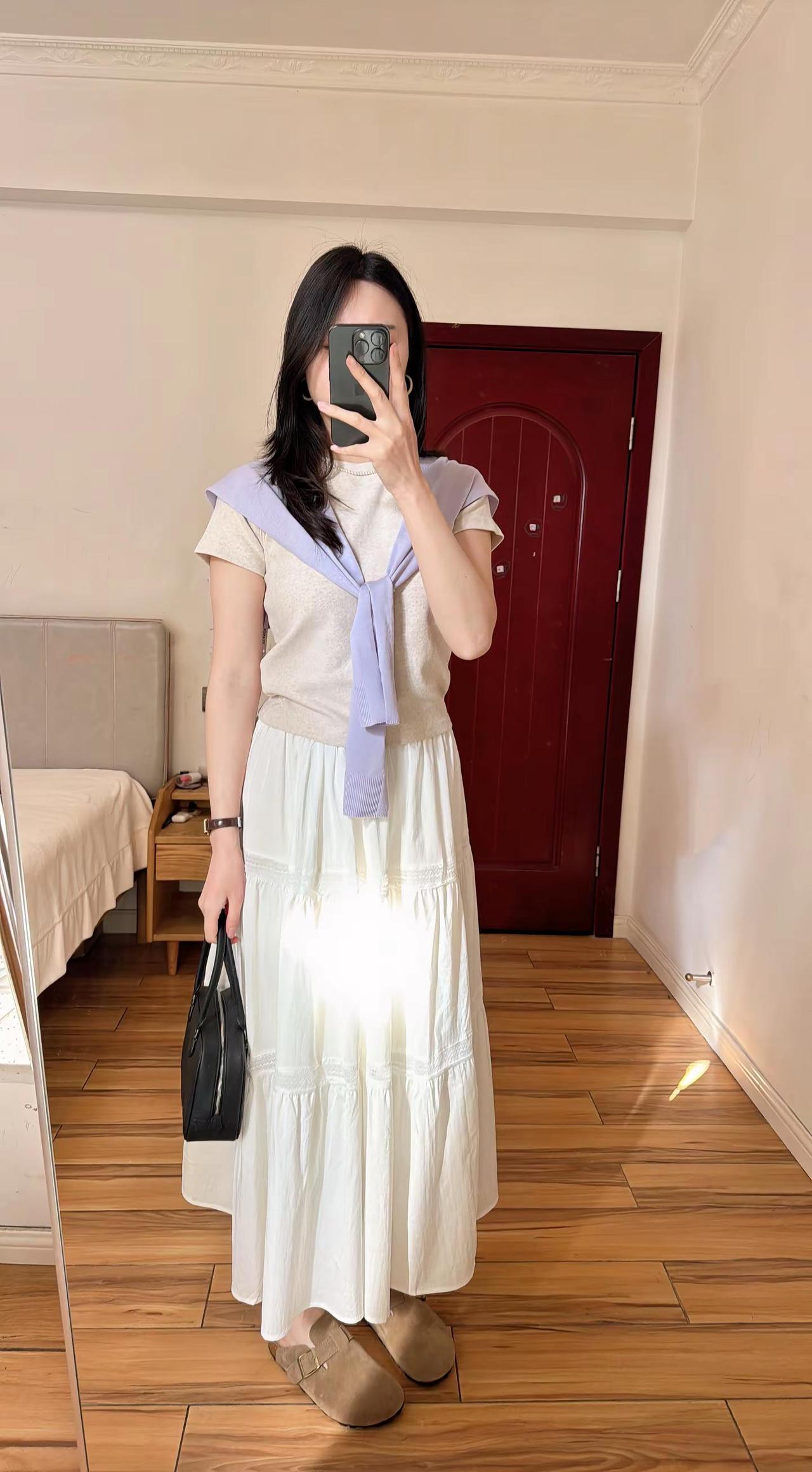 原歌时装家的针织三件套,好温柔的紫色,搭配白裙子,整体色调柔和又干净今日穿搭lo