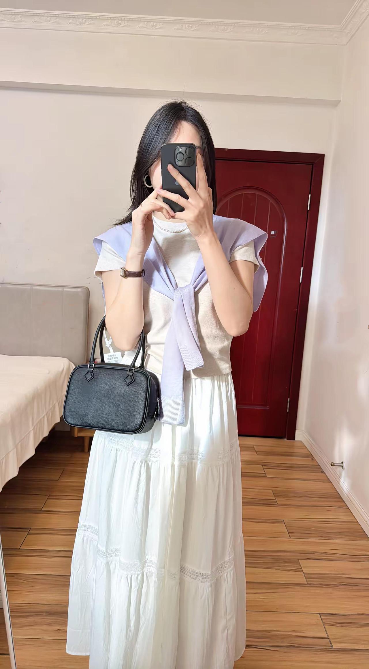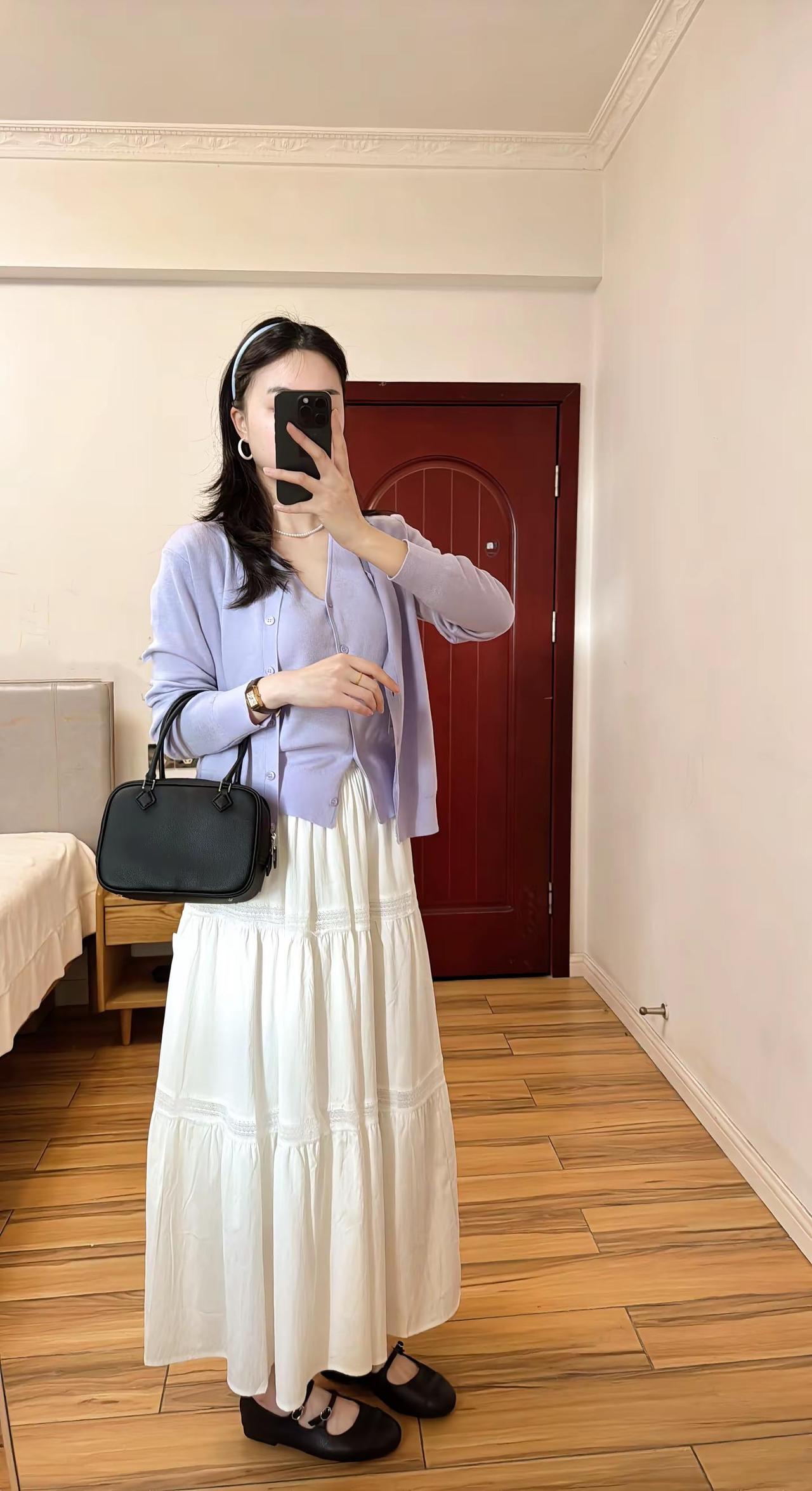 原歌时装家的针织三件套,好温柔的紫色,搭配白裙子,整体色调柔和又干净今日穿搭look 原歌时装