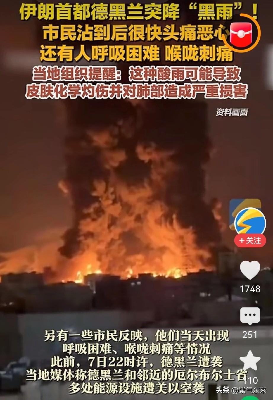 老美也太狠了,对伊朗使用如此卑劣的手段,简直毫无人性! 既然使用了特殊武器,让国际社会强烈谴责和愤慨! 伊朗首都德黑兰出现了“黑雨”,伊朗市民沾到以后出现头痛恶心,还有的市民出现喉咙刺痛,呼吸困难! 当地卫生提醒:这种酸雨可能导致皮肤化学灼伤,对肺部造成严重伤害! 这种情况出现在美国对伊朗轰炸完以后出现的! 老美号称军事第一强国,既然也使用这下三滥的手段,为了所谓的脸面真是无所不尽! 美国这样做只会激起伊朗人民对美国和以色列仇恨,让伊朗更加团结!伊朗怒批美国 美国对伊朗空袭