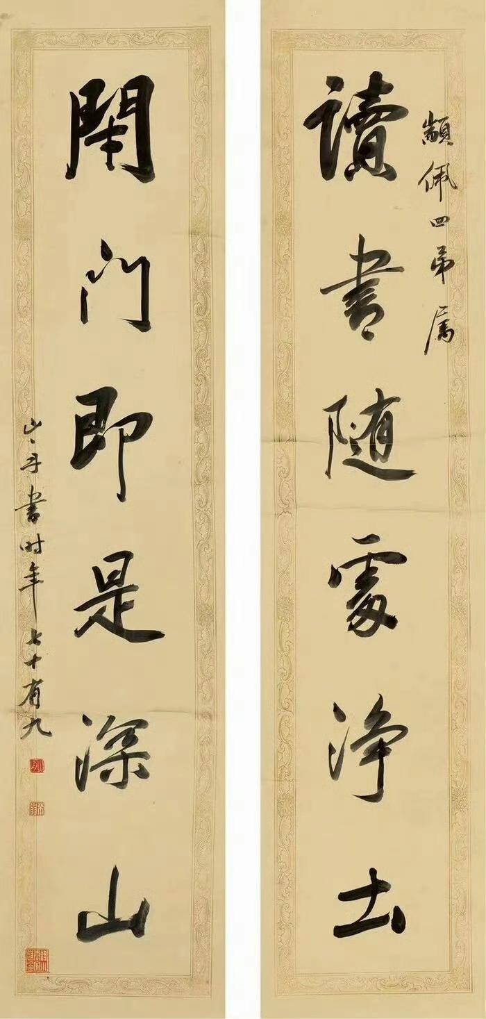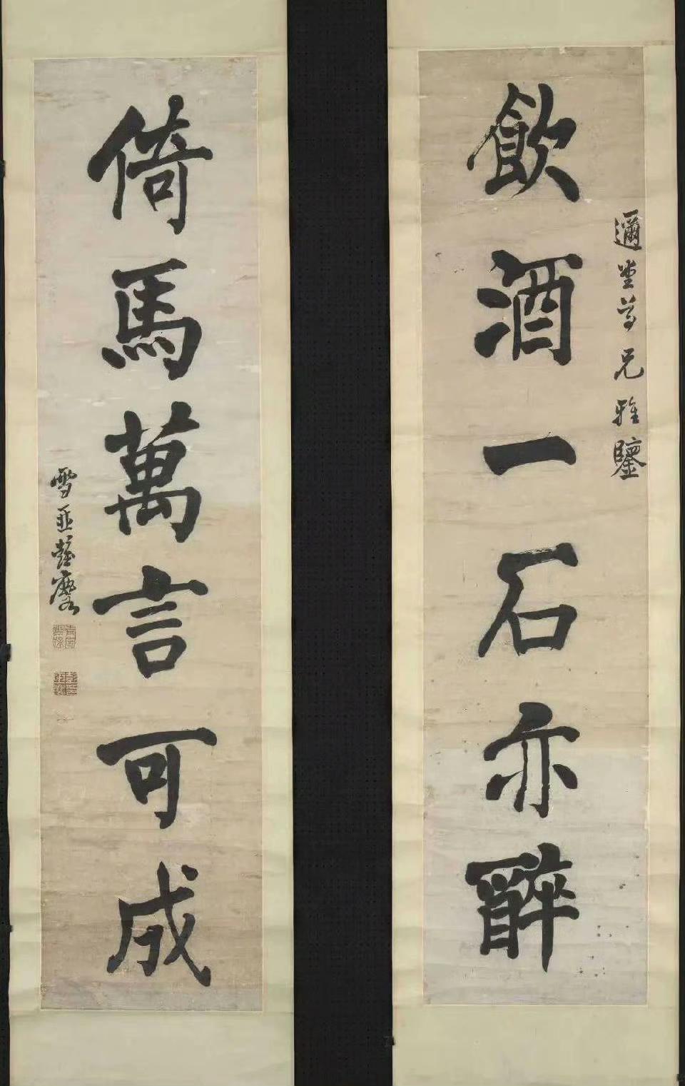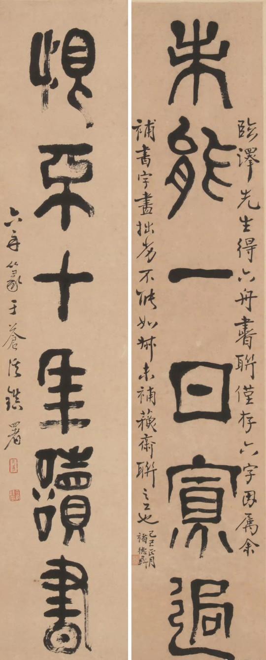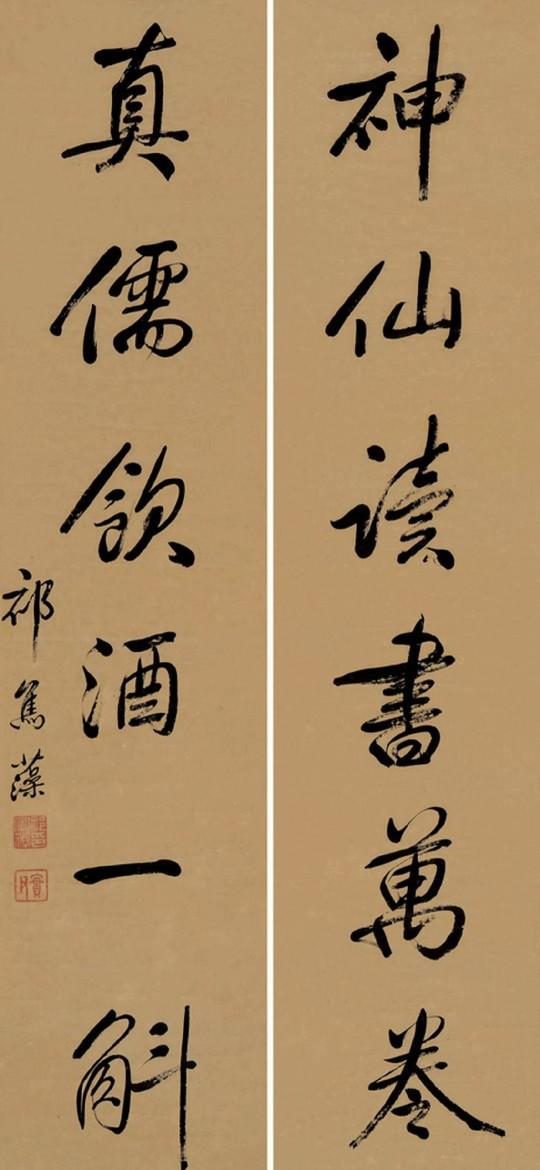 姚元之 隶书六言联 《对云山而成趣,乐琴书以消夏。》 赵古泥 行书六言联 《三不朽首立德,子敬安及右军。》 篆书六言联 《略具四时所乐,不争一日之长。》 达受 褚德彝 篆书六言联 《未能一日寡过,恨不十年读书。》 王震 行书六言联 《为业最上乘者,可以诸相见不。》 祁隽藻 行书六言联 《神仙读书万卷,真儒饮酒一斛。》 《读书随处净土,闭门即是深山 。》 清代奚冈隶书五言联 《诗酒琴棋客,风花雪月天。》 彭玉麟 饮酒倚马六言联 《饮酒一石亦醉,倚马万言可成。》