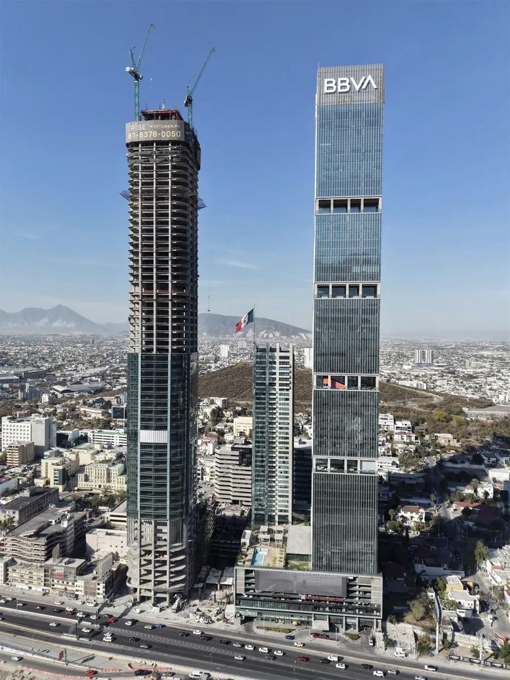 484米!拉丁美洲第一高楼Torre Rise施工突破300米 刷新区域天际线 墨西哥蒙特雷市Torre Rise超高层项目建设迎来重要节点,主体结构高度已突破300米,正按计划向484米最终标高冲刺。项目建成后将登顶拉丁美洲第一高楼,同时成为西半球第二高建筑,位居全球摩天大楼第13位。 蒙特雷作为墨西哥第三大城市与核心工商业中心,汇聚多家跨国企业总部,承载重大产业投资,城市发展动能强劲。Torre Rise由Nest开发、Ancore集团设计,历经七年方案优化,高度从初始规划350米提升至484米,增幅达38%。 该建筑总层数99层,打造集住宅、办公、商业、酒店于一体的大型城市综合体,基座设置空中连廊与屋顶公园,顶层观光平台将成为城市新文旅地标。项目应用多项突破性工程技术:40根桩基深入地下15米,3米厚钢筋混凝土底板保障结构稳定;95%玻璃幕墙采用定制尺寸,提升材料利用率;在地质活跃的拉美地区,项目未采用传统调谐质量阻尼器,以结构创新实现抗震抗风性能。 当下美洲超高层建设持续升温,多国不断刷新建筑高度纪录。Torre Rise以结构表现主义与装饰艺术融合的设计语言,兼顾地域文脉与现代美学,建成后将显著提升蒙特雷城市形象,成为拉丁美洲建筑工程与城市更新的标杆项目,推动区域建筑产业迈向更高水平。