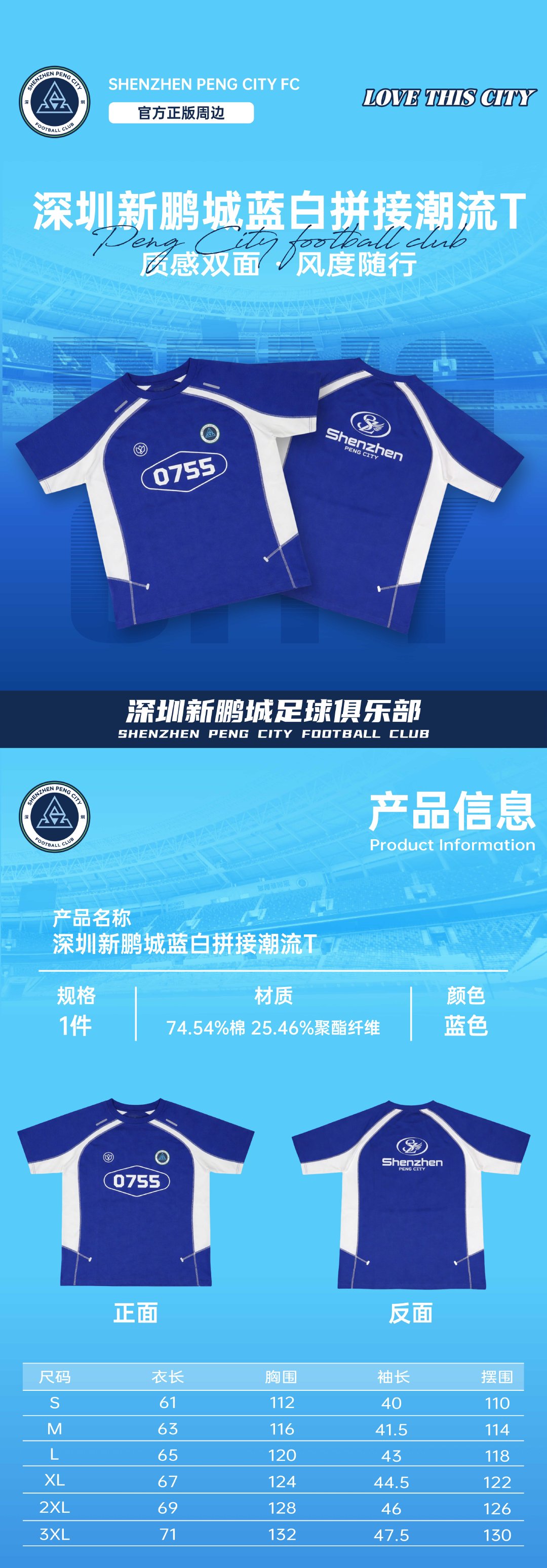 为热爱上新|深圳新鹏城官方周边焕新登场为新赛季定制的应援T恤,蓝白撞色拼接设计,