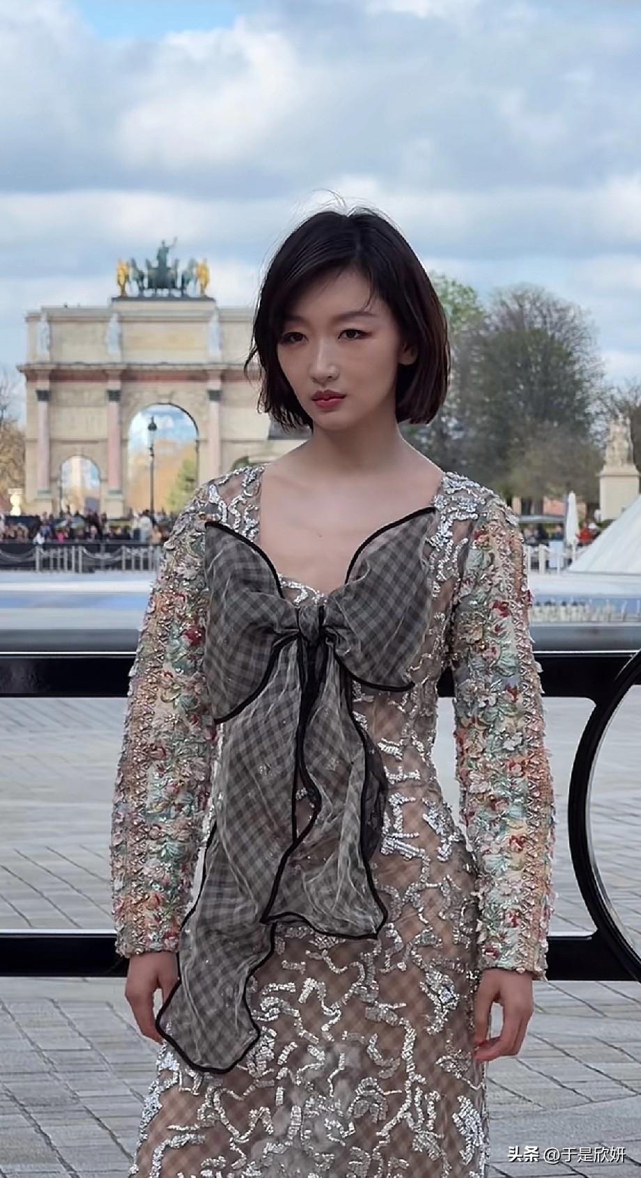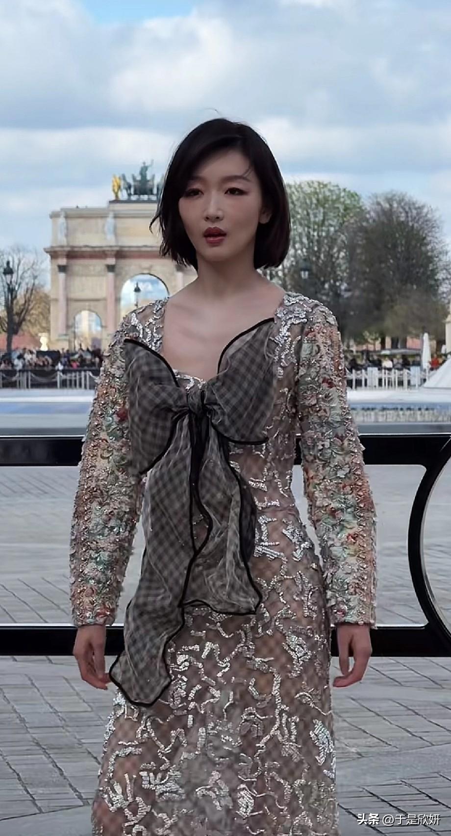 周冬雨巴黎看秀生图疯传!巨型蝴蝶结被骂土爆,网友:这裙子把162cm穿成150cm。 周冬雨亮相巴黎LV大秀,一身透视刺绣裙配超大格纹蝴蝶结,直接把网友看懵了。 有人说“这蝴蝶结像把枕套剪了缝在胸口”,也有人吐槽“小个子穿成膀大腰圆,仪态全被布料吃掉”。 但也有粉丝力挺:“清冷脸撑住了,这是高级感不是土气!” 你觉得这身是时尚灾难还是先锋审美?👇