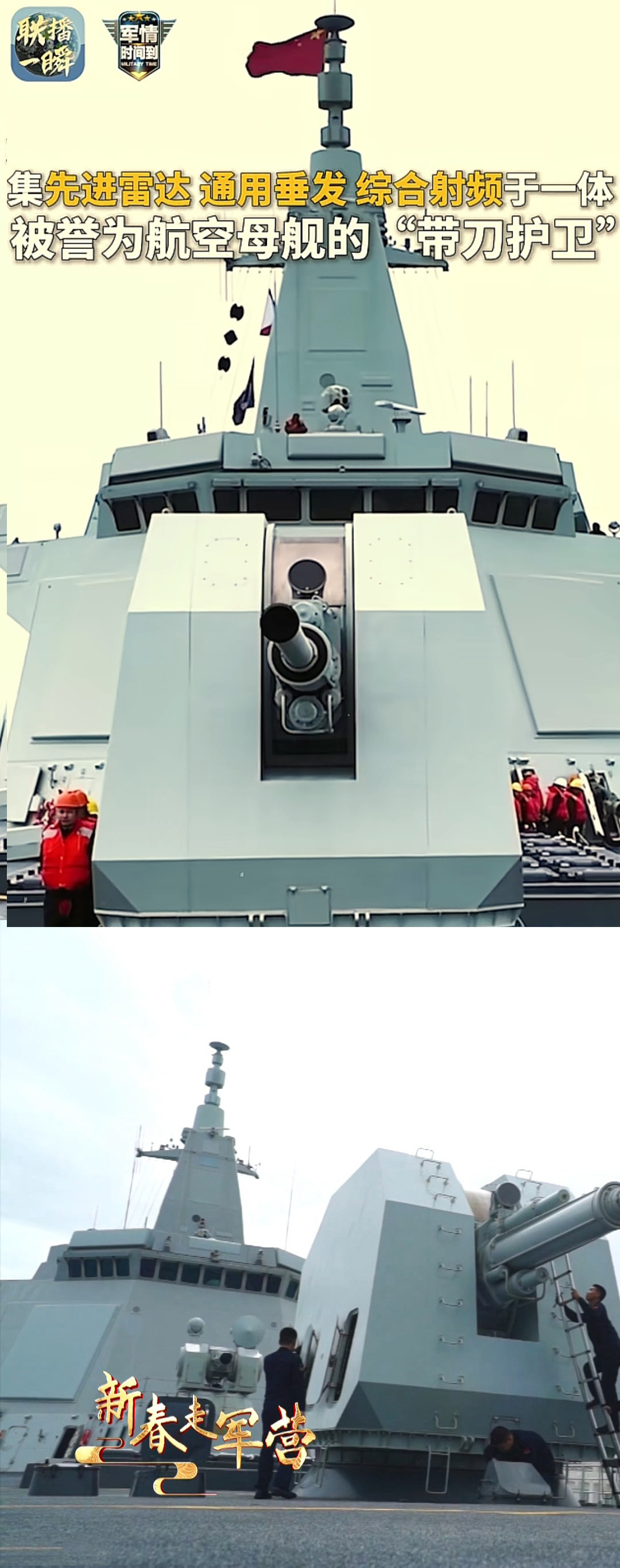 055万吨大驱家族再添新成员 仅从正面视角就能看出新批次055(上)和前8艘(下)外观上有不少不同之处