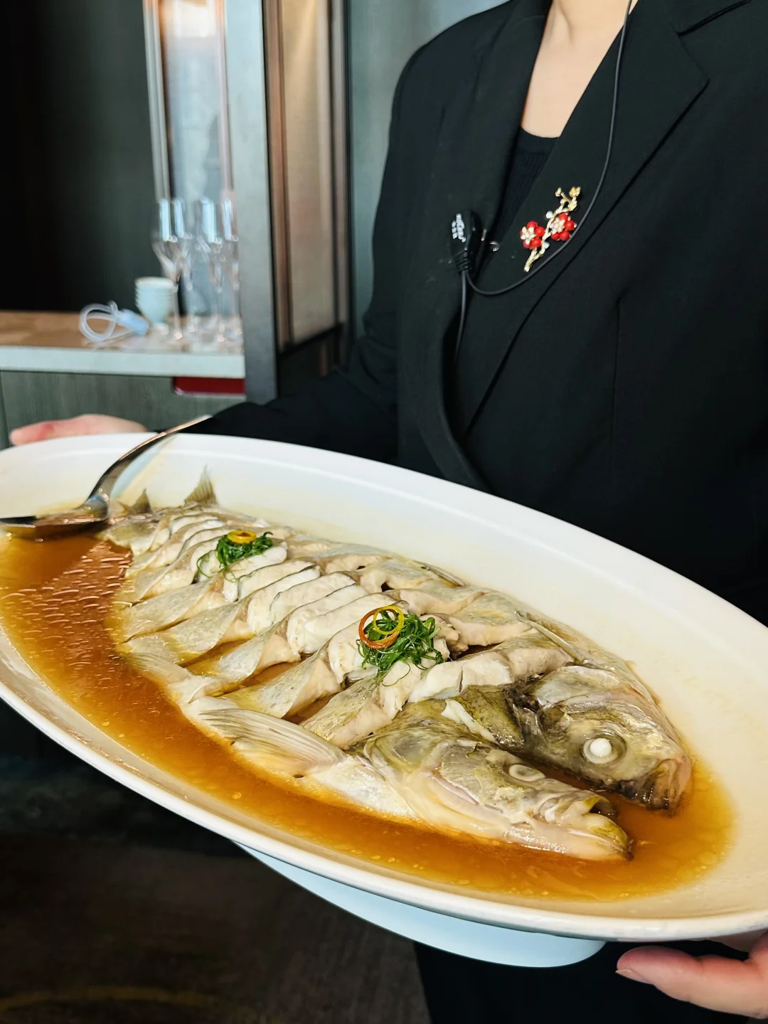 • 鸡汁蒸大白鱼 🐟:整条鱼端上来超有排面,鸡汁的鲜完美融入鱼肉,肉质细嫩到一抿就化,寓意“年年有余”,太适合生日宴了!