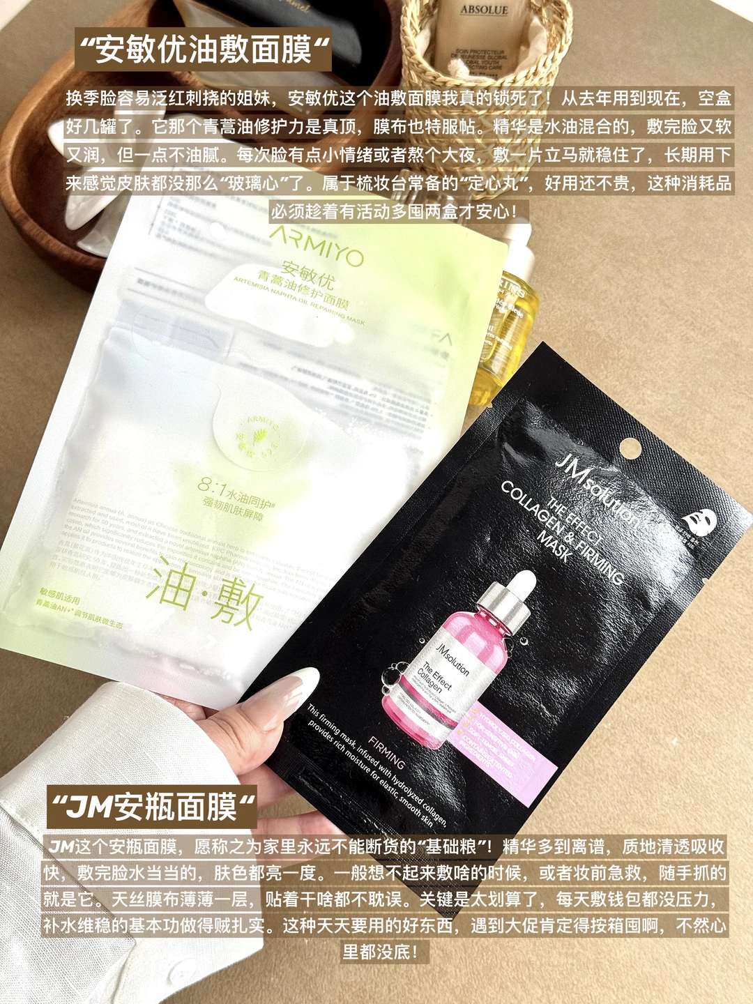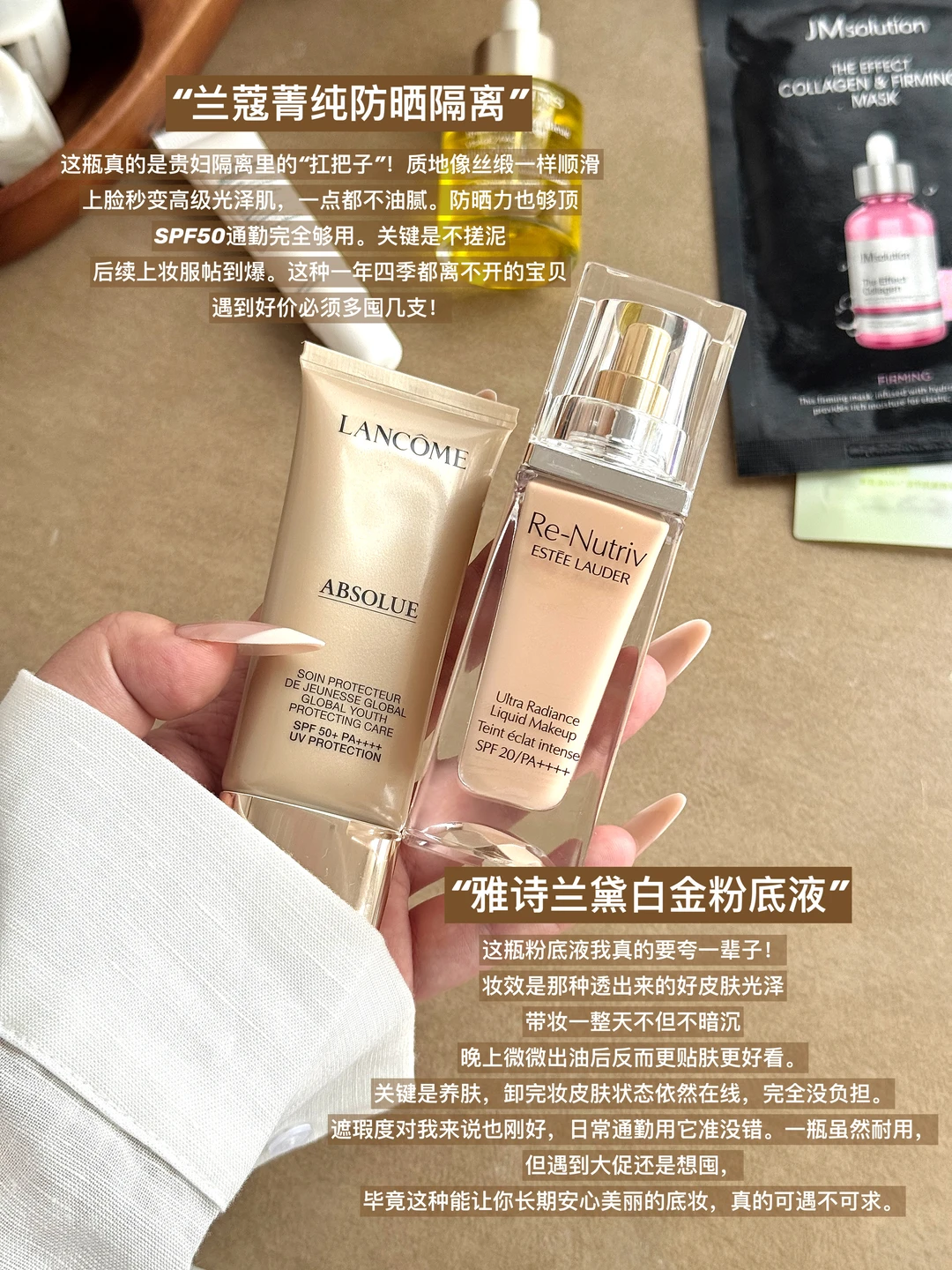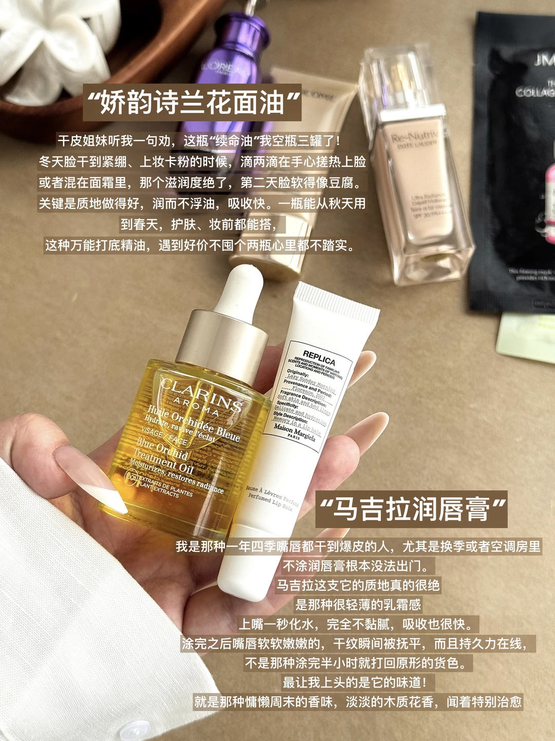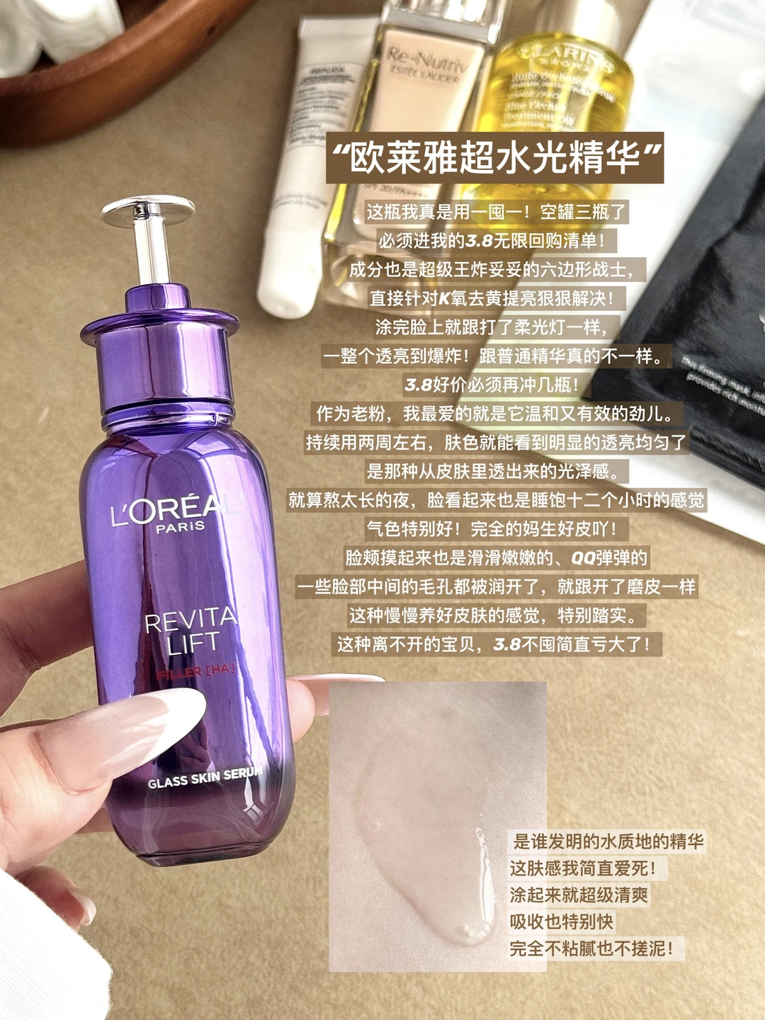 攒了一波用空无数瓶的宝藏好物 都是经过时间考验的“元老级选手” 趁38活动闭眼冲就对了!🛒 🤍精简护肤线: 欧莱雅超水光精华(K氧去黄提亮一瓶拿捏) 娇韵诗兰花面油(以油养肤秋冬离不开) 安敏优油敷面膜/JM安瓶面膜(换季维稳俩法宝) 🤍精致底妆线: 香奈儿洗面奶(洗完不拔干香味高级) 兰蔻隔离(让底妆扒得更牢) 雅诗兰黛白金粉底液(越夜越美丽本尊) 这些是真真实实的心头好 用量说明一切!姐妹们按需囤!!!!