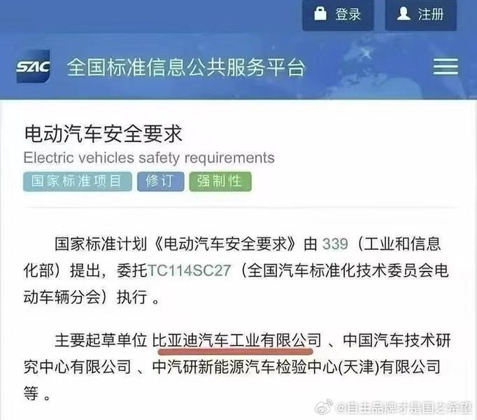 比亚迪成为全球汽车标准制定者,当然之前早就参与国家标准制定。 有些博主吹
