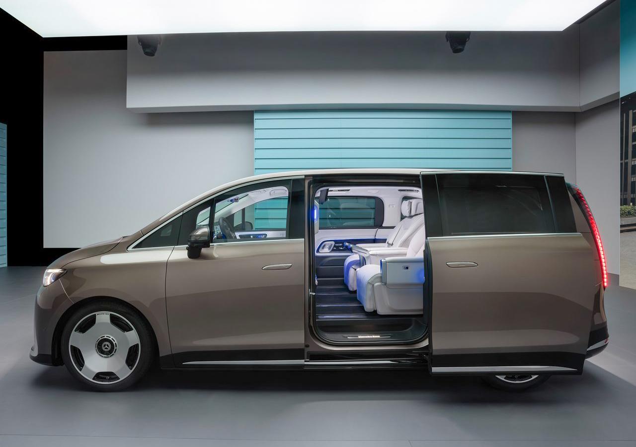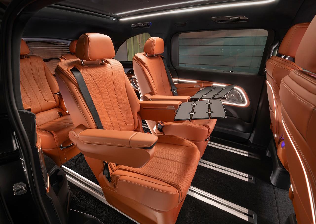 换代奔驰V Class这回把豪华干得非常彻底了,哦,现在叫奔驰VLE了,直接干成了纯电,115度电池700km续航,带上下40mm调节空悬+双向各7度后轮主动转向,有5座但最多去到三排8个座位。 国内豪华MPV这两年我们见到了很多,奔驰VLE跟它们比,你觉得颜值上是输是赢?