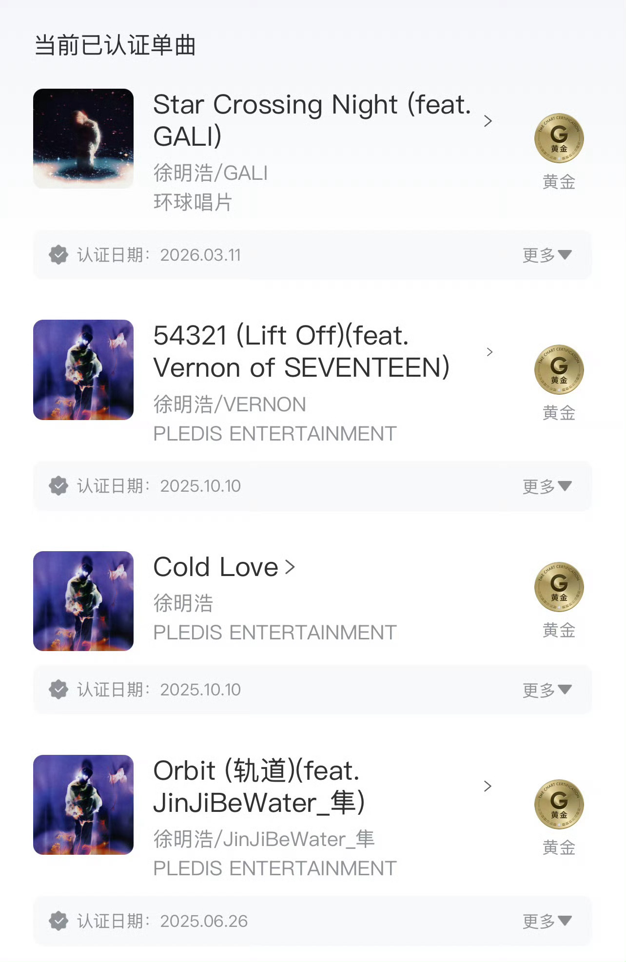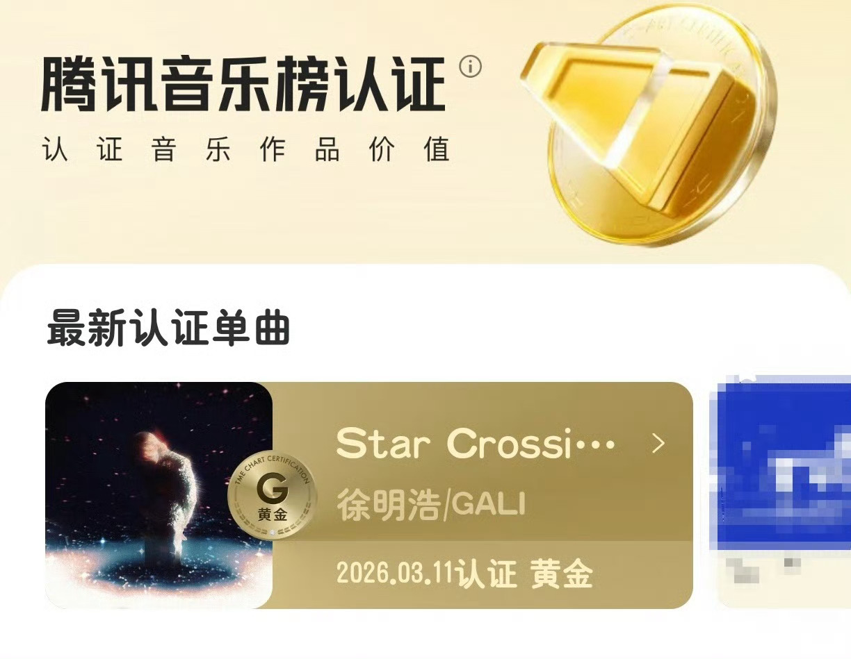 徐明浩StarCrossingNight黄金单曲恭喜徐明浩《Star Crossing Night》解锁Q音黄金单曲认证个人第四首!徐明浩第四首黄金单曲