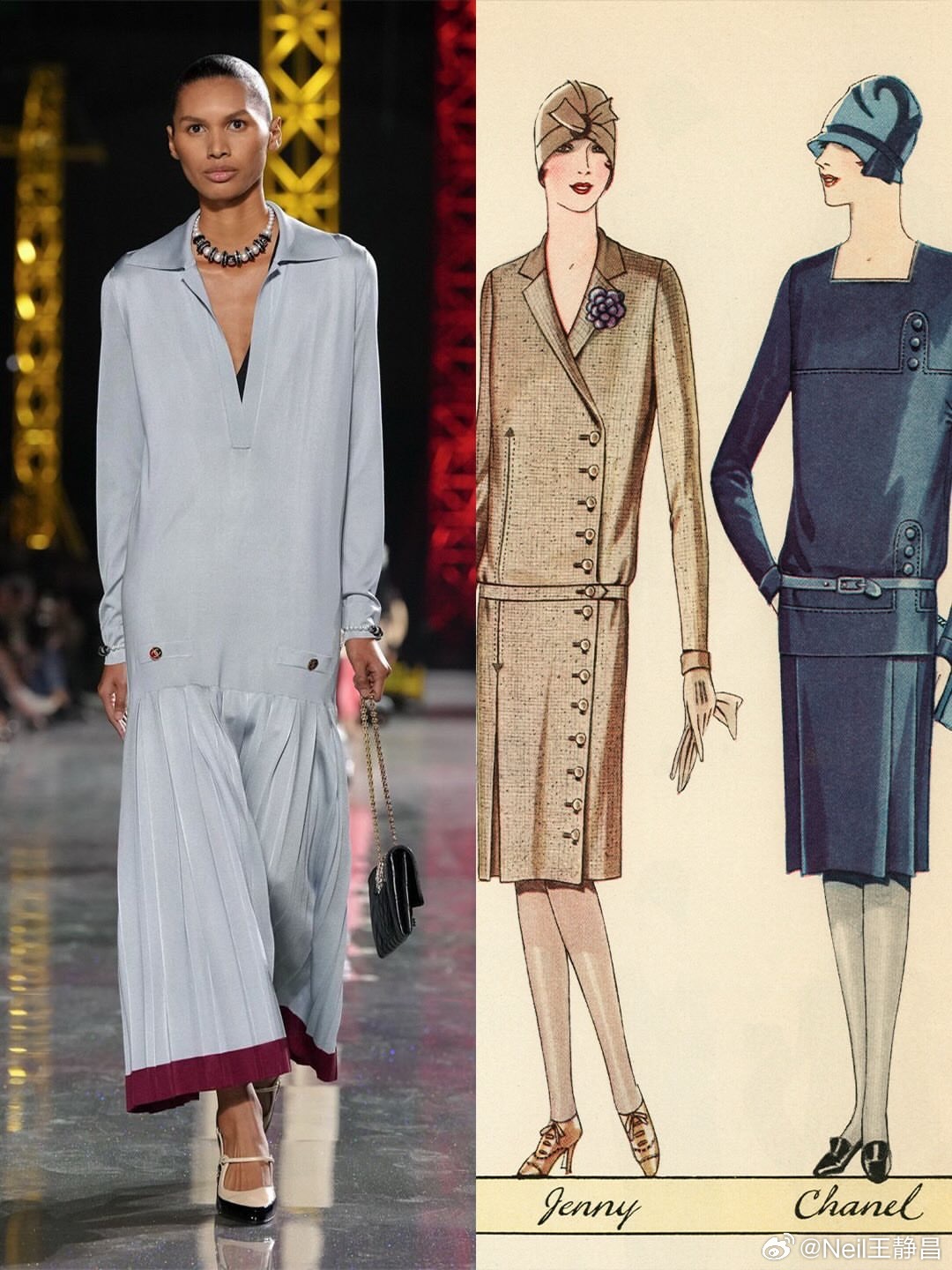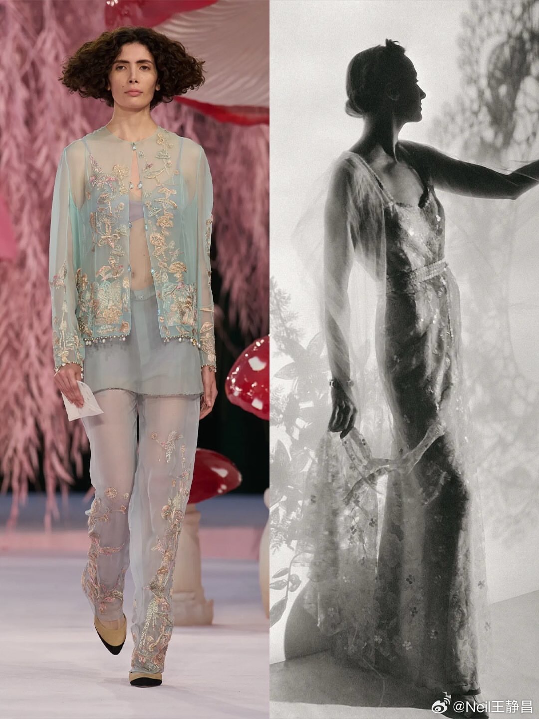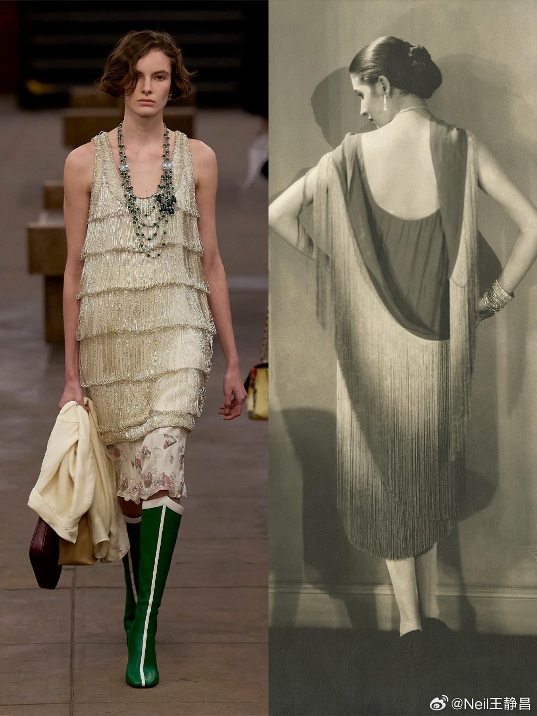 Matthieu Blazy上任以来不断从Gabrielle Chanel的历史档案中寻找设计灵感,当然他并非简单的“考古”或复刻。他更像一位“人文阅读者”,透过档案去理解香奈儿女士作为“人”的那一面,再将感悟转化为当代设计 。巴黎时装周