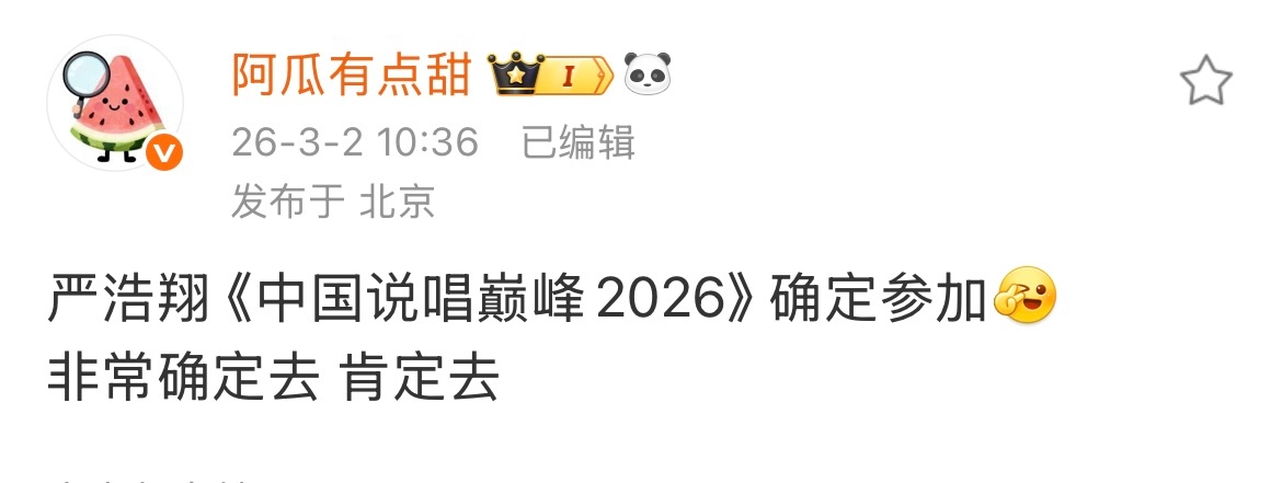 严浩翔将参加中国说唱巅峰2026 严浩翔将参加《中国说唱巅峰2026》~瓜主爆料确定参加是常驻嘉宾!节目暂定为4月录制,期待住了严浩翔常驻中国说唱巅峰2026