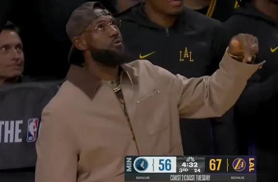 老詹在场下也不闲着,庆祝的酒已经为你开好森林狼vs湖人