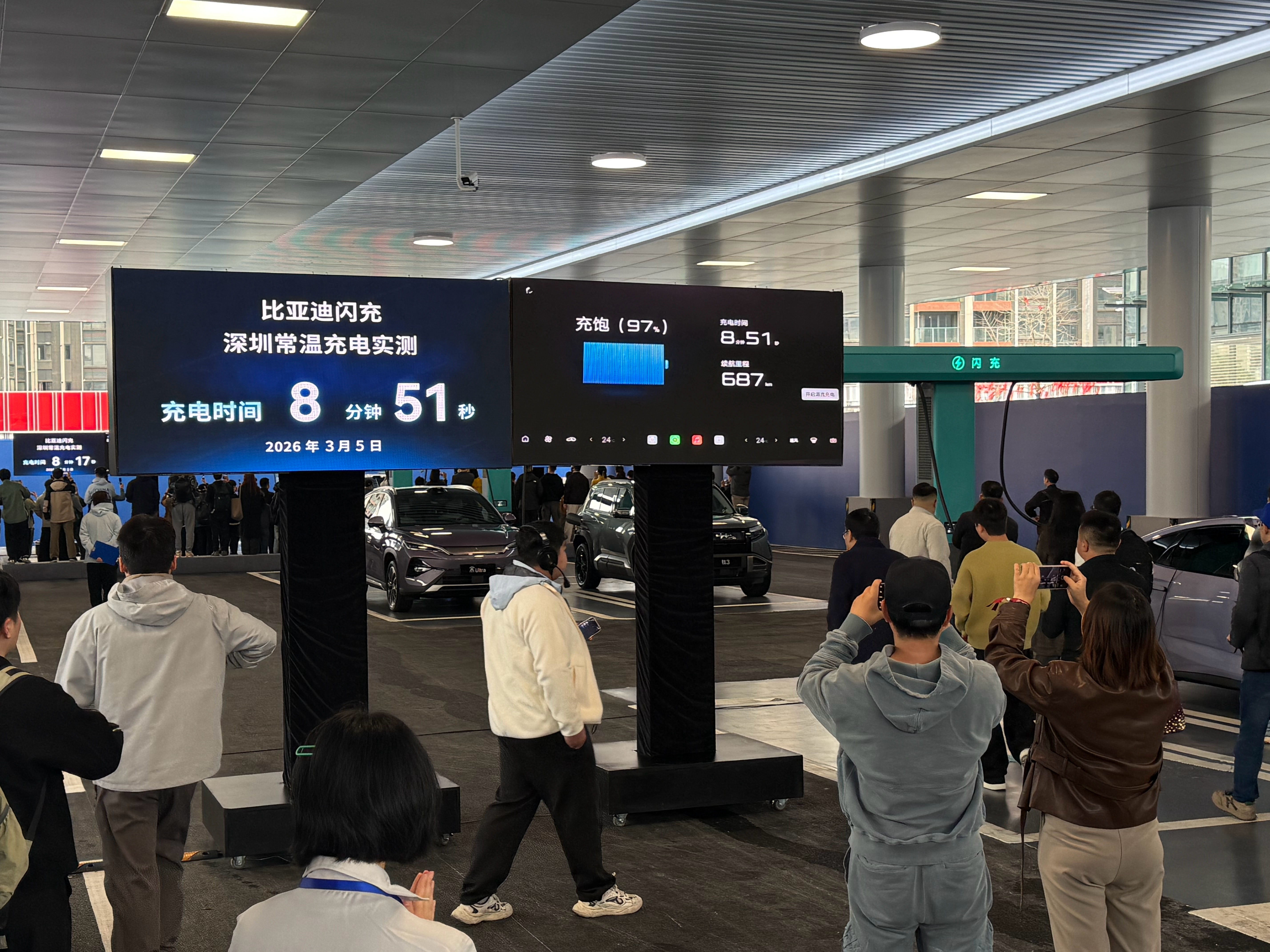 比亚迪这闪充技术也太顶了,9分钟几乎充满,补能687KM,即便是冷冻舱也有极其亮