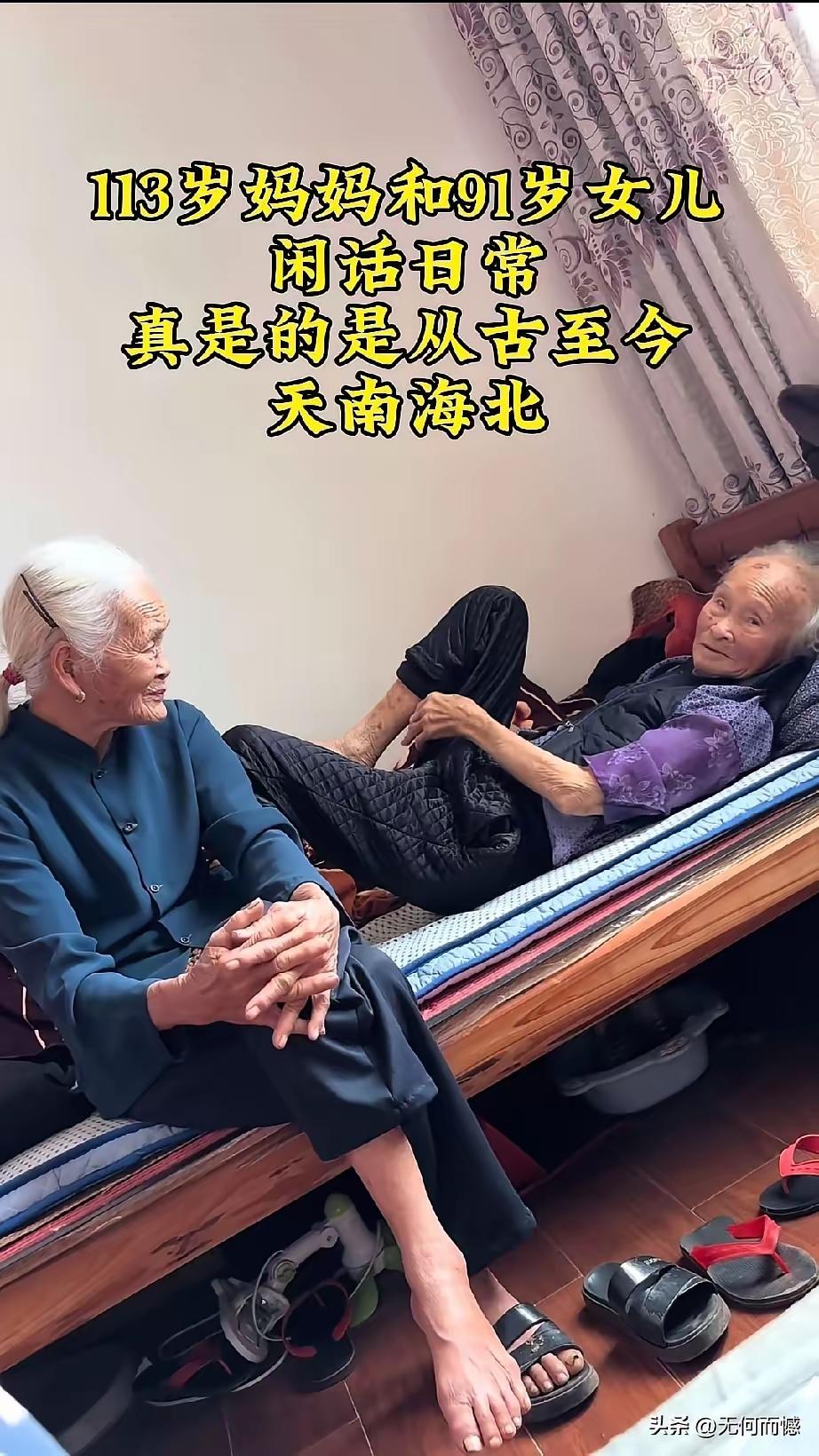 113 岁母亲与 91 岁女儿的跨世纪对话:当白发遇见更白的发,才懂什么是人间顶级幸福! 在这个快节奏、充满焦虑的时代,我们总是在追逐名利,计较得失,却往往忽略了生命中最纯粹、最震撼人心的画面。今天,我想带大家看一张照片,或者说,见证一个场景:一位躺在床上的老奶奶,今年已经113 岁了;而坐在床边悉心陪伴的,是她的女儿,今年也已91 岁高龄。 这不是电影里的虚构情节,也不是神话传说中的长生不老,这是真实发生在人间的奇迹。当我第一次看到这一幕时,内心受到的冲击久久无法平复。这是我此生以来,亲眼所见年龄最大的母亲,和年龄最大的女儿在一起聊天。两位老人的头发都已如雪般苍白,皱纹里刻满了三个世纪的沧桑,但她们眼神交汇的那一刻,仿佛时间都静止了。 试想一下,当一个人到了 91 岁,本该是儿孙满堂、被后人照顾的年纪,可她依然拥有叫一声“妈”的权利。在这个世上,还有谁能比她更幸福?无论外面的世界如何风云变幻,无论身体如何衰老,只要母亲还在,她就永远是个孩子。那种安全感,是任何财富、地位都无法替代的。她们聊的或许只是今天的天气、陈年的旧事,甚至是几十年前的一顿家常饭,但在旁人听来,这却是世间最动听的乐章。 看着这对跨越世纪的母女,我不禁想起了自己的母亲,心中涌起一股难以言喻的酸楚与遗憾。我的母亲在 71 岁那年,便匆匆离开了我,离开了这个她眷恋的世界。那时候的我,总以为日子还长,总想着等忙完这一阵再好好陪陪她,等赚够了钱再带她去旅游,等孩子大一点再全家团聚。可是,生命从来不会给我们太多“等待”的机会。 如今,每当我看到别人家母子团聚的画面,那种刺痛感就会再次袭来。如果我的母亲能像这位 113 岁的老人一样长寿该多好?如果我能在 50 岁、60 岁甚至 70 岁的时候,还能喊一声“妈”,还能握着她枯瘦的手唠唠家常,那该是多么奢侈的幸福?可惜,人生没有如果,只有结果和后果。在寿命这件事上,人和人之间的差距,真的让人无力感叹,甚至觉得命运有些残酷。 这位 91 岁的女儿是幸运的,她的幸运不仅仅在于母亲的高寿,更在于她拥有了比别人多二十年的母爱时光。在这多出来的二十年里,她可以无数次地回味童年的温暖,可以在迷茫时得到母亲的指点,可以在孤独时感受到母爱的包围。对于她来说,母亲不仅仅是一个亲人,更是她与这个世界最初、最深的连接,是她精神世界的定海神针。只要母亲在,她就觉得自己还没老,她就觉得自己还有来处。 反观我们自己,很多时候都在透支着与父母相处的时间。我们忙着工作,忙着社交,忙着在手机屏幕上刷着各种无关紧要的信息,却常常对父母的唠叨感到不耐烦,对他们的迟缓感到焦急。我们总以为来日方长,却忘了世事无常。那位 113 岁的老人,也许早已记不清很多往事,也许说话已经含糊不清,但只要她还在那里呼吸,对于 91 岁的女儿来说,就是最大的安慰,就是家完整的象征。 这张照片给所有人的启示是深刻的:孝顺不能等,陪伴不能拖。 不要等到子欲养而亲不待时,才在深夜里痛哭流涕;不要等到父母离去后,才对着空荡荡的房间后悔莫及。哪怕只是回家吃一顿饭,哪怕只是打一个电话,哪怕只是静静地陪他们坐一会儿,都是生命中不可复制的珍贵时刻。 生命的长度我们无法掌控,但生命的厚度可以由我们来填充。这位 113 岁的母亲和 91 岁的女儿,用她们的存在告诉我们:亲情是世间最伟大的力量,它能穿越时间的洪流,抵御岁月的侵蚀。拥有高寿的母亲是一种福报,而懂得珍惜这份福报,更是一种智慧。 愿天下的父母都能健康长寿,愿所有的子女都能在父母健在时,尽情地去爱,去陪伴。不要让“遗憾”成为我们余生唯一的注脚。当你还能听到那声熟悉的呼唤,当你还能看到那个佝偻的背影,请一定要紧紧抓住,因为那就是你此生最大的财富,是你无论走到哪里,都能照亮归途的光。 在这个喧嚣的世界里,让我们慢下来,回头看看那些深爱我们的人。毕竟,能叫一声“妈”还有人应答,这才是人间顶级的幸福,才是我们奋斗半生最终极的意义。跟老人有效沟通 母女情感碰撞 奶奶日常对话
