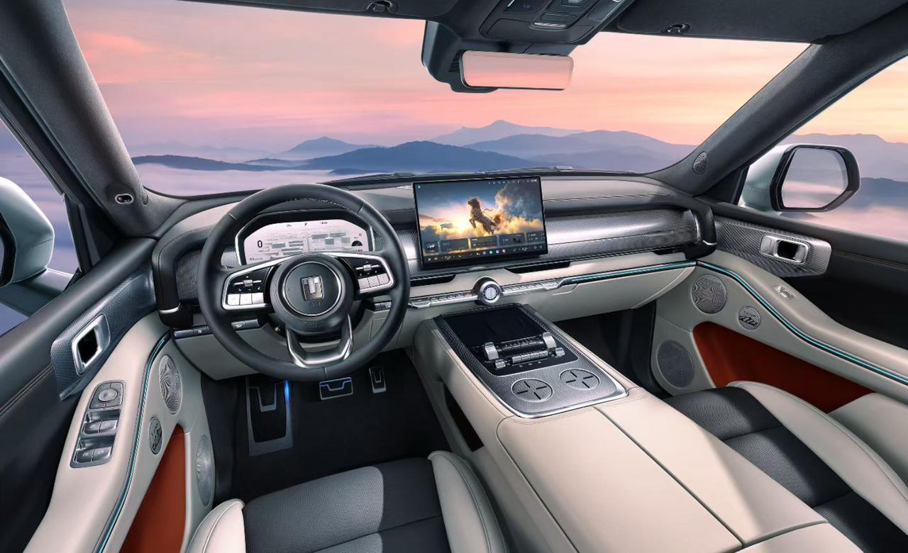 全新坦克700 Hi4-Z发内饰官图,前排悬浮中控屏,后排翻折吸顶屏,大量物理按键,机械爱好者狂喜,带氛围灯,可升降杯架,踏板也加入坦克元素,后排座椅可以调节角度,预计为电动调节。 回顾一波新车信息,车长5米1,轴距3米,加入激光雷达,中网设计灵感麒麟甲片,车色又致敬传统文化,Hi4-Z插混动力,发动机最大功率185千瓦,匹配59度三元锂电池,纯电续航190km。【来自懂车帝车友圈】