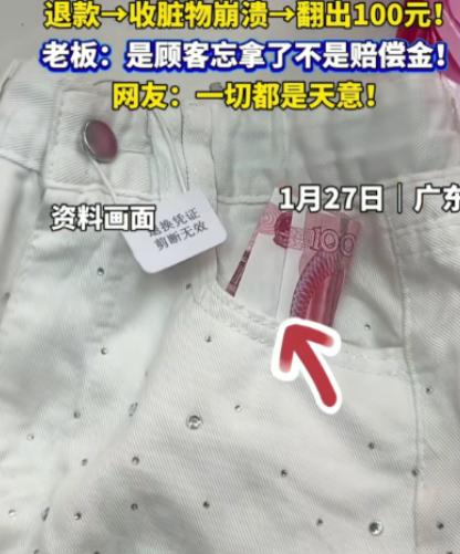 “这就是天意!”广东东莞,店主收到顾客退回来的裤子,看到吊牌完整,也没仔细检查,就把70多块钱的货款退给了对方。可没想到,他把裤子返给工厂后,工厂又把裤子退回来了,店主这才发现裤子明显被人穿过了,裤裆都是黄的,可他一摸口袋,却从里面掏出了100块钱。店主有些哭笑不得:这100元应该是顾客忘拿了,不是因脏留下的赔偿款。 袁大哥是一名普通的网店老板,这几年电商竞争激烈,生意日子过得异常艰难。 以前他做服装生意还算顺风顺水,销量稳定,可自从网络购物越来越普及,客户的退货要求也越来越高,再加上“运费险”和“七天无理由退款”的政策出台,袁大哥的利润空间被进一步压缩。 每当他在夜深人静的时候盘点库存,总能看到那些退回来的裤子整齐地叠放在仓库里,心里五味杂陈——有些裤子几乎是全新的,但有些裤子却明显被试穿过,甚至有些脏迹让他直皱眉头。 那天上午,袁大哥照例去仓库处理退货。一个中年女性顾客退回了一条牛仔裤,吊牌完好,裤子折叠得很整齐,看起来似乎没有穿过的痕迹。 袁大哥心想:“吊牌都在,也没有明显污渍,应该没问题吧。” 于是,他迅速操作,70多块钱的货款就退回到了顾客账户。操作完毕,他并没有多加检查,就把裤子装进了返工箱,准备返给上游工厂。 可是,事情远没有想象中那么简单。几天后,工厂把这条裤子退了回来,并附上了一条短信:“衣服明显穿过,裤裆有黄色污渍,无法再上架销售。” 看到这条短信,袁大哥整个人都愣住了——裤裆发黄?这可不是小问题啊!他心里一阵憋闷,刚才退货的时候明明吊牌完整、外观干净,他怎么一点也没注意到? 袁大哥回想起自己当时的心情:那天仓库堆得乱糟糟的,退货的衣服一箱接一箱,他手里还拿着货款流水表,脑子里想着如何处理节省成本的问题,完全没注意到裤子内部细节。 如今被工厂指出问题,他心里既无奈又有些自责:“真是粗心大意,连自己都要坑自己了。” 他蹲下身,把裤子翻来覆去地看,裤裆确实有黄色污渍,散发出一股淡淡的异味,这种明显被人穿过的痕迹让他心里五味杂陈。 正当他沮丧地伸手去检查口袋的时候,却意外地摸到了一张纸币——100块钱。 袁大哥愣了愣,心里先是震惊,随后又有些哭笑不得:“这100元……该不会是顾客忘在口袋里的吧?这钱可不是因为脏而留下的赔偿款啊。” 他把裤子放在桌上,拿出手机录了一段视频,讲述了事情的经过:从退货当天的心态,到发现裤裆污渍的无奈,再到摸到100元的意外惊喜,他把这一切都真实地记录下来。 视频中,他幽默又带着一丝自嘲地说:“各位网友啊,你们说,这叫‘偷鸡不成蚀把米’,我本来想着顺利处理一个退货,没想到裤子穿过了还给我寄钱回来。” 视频上传后,很快引发了网友的热议。有人评论:“这顾客也太不要脸了,穿过的裤子还退回来,黄黄的还好意思!” 也有人调侃:“哈哈,这裤子穿的可能比我还勤快,结果反而赔了自己一百块。” 还有些网友则从袁大哥的角度出发,感慨小商家的难处:“开网店真的不容易,稍微疏忽就会损失钱财,还要处理这些奇葩退货。”