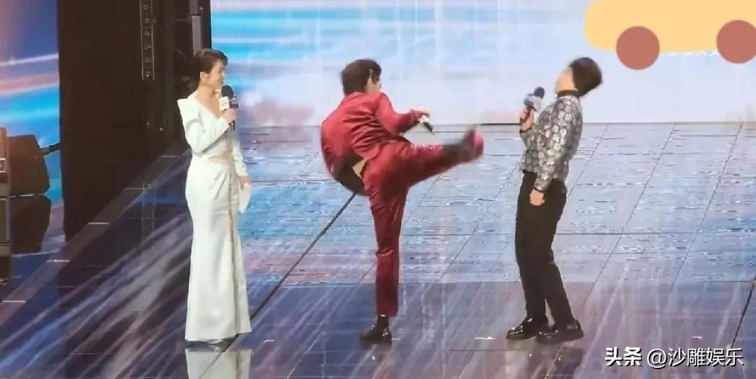 向佐,又搞事了! 3月11日中午,向佐又双叒叕冲上热搜第一了!这次不是在电影里打得精彩,而是在昨天的微短剧品质盛典上,他那脚差点“送走”主持人的飞踢,直接把全网给踢懵了。 这到底是个什么名场面? 时间倒回到3月10日晚,上海微短剧品质盛典现场。穿着酒红色丝绒西装的向佐,原本和男主持人相谈甚欢。主持人刚夸完他“穿丝绒西装还能把拳打得这么好”,话音还没落,向佐突然毫无预兆地来了一记又快又猛的飞踢!那脚尖几乎是擦着主持人的面门扫过去的。 现场瞬间惊呼一片!那位主持人也是本能地猛然后仰才惊险躲过,虽然脸上闪过一丝错愕,但凭借极强的专业素养,立刻稳住情绪继续主持,这心理素质真得点赞。 事后向佐对着主持人比划了一个“假动作”的手势,似乎在解释这只是个演示。但这解释显然有点苍白。 第一,场合不对。 这是盛典舞台,不是武术训练场。在这种近距离、主持人毫无防备的情况下突然起脚,哪怕控制得再好,危险系数也极高。网友们辣评:“万一没收住,那就是直播事故了! ” 第二,分寸感缺失。有网友直言:“聊着聊着突然来一脚,这舞台安全意识在哪?” 更有犀利的评论直接开麦:“太危险了,以为自己很帅吗? ” 其实熟悉向佐的朋友都知道,这已经不是他第一次因为“抽象”出圈了。 回顾他的“战绩”:去年自导自演的电影《门前宝地》,那个全程单手食指戳鼻梁的“向佐指”,以及说完台词疯狂跑下楼、回头狠扇自己一巴掌的魔幻操作,至今仍是全网喜剧素材。上综艺更是贡献了喝水从鼻孔喷涌而出、趴地上模仿蜥蜴等名场面。再加上之前扇李小龙模仿者耳光的争议,他的每一次动作都能精准踩中网友的笑点或槽点。 有人调侃他:“别人靠作品出圈,向佐靠抽象出圈,内娱独一份。 ” 还有人说:“他明明想当李连杰,最后活成了周星驰电影里的配角。” 说回这次事件,向佐或许只是想证明自己“有功夫”,但在错误的时间、错误的地点,对着错误的对象展示,这份“热情”就变了味。功夫是用来强身健体和艺术创作的,不是用来在公共场合吓人的。 希望在抽象的路上狂奔的向佐,下次出腿前,先想想身边人的安全。 毕竟,不是每次都能这么幸运,遇到一个反应神速的主持人。