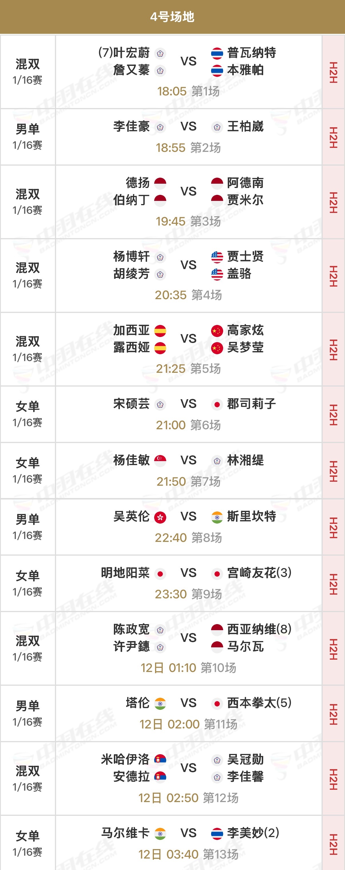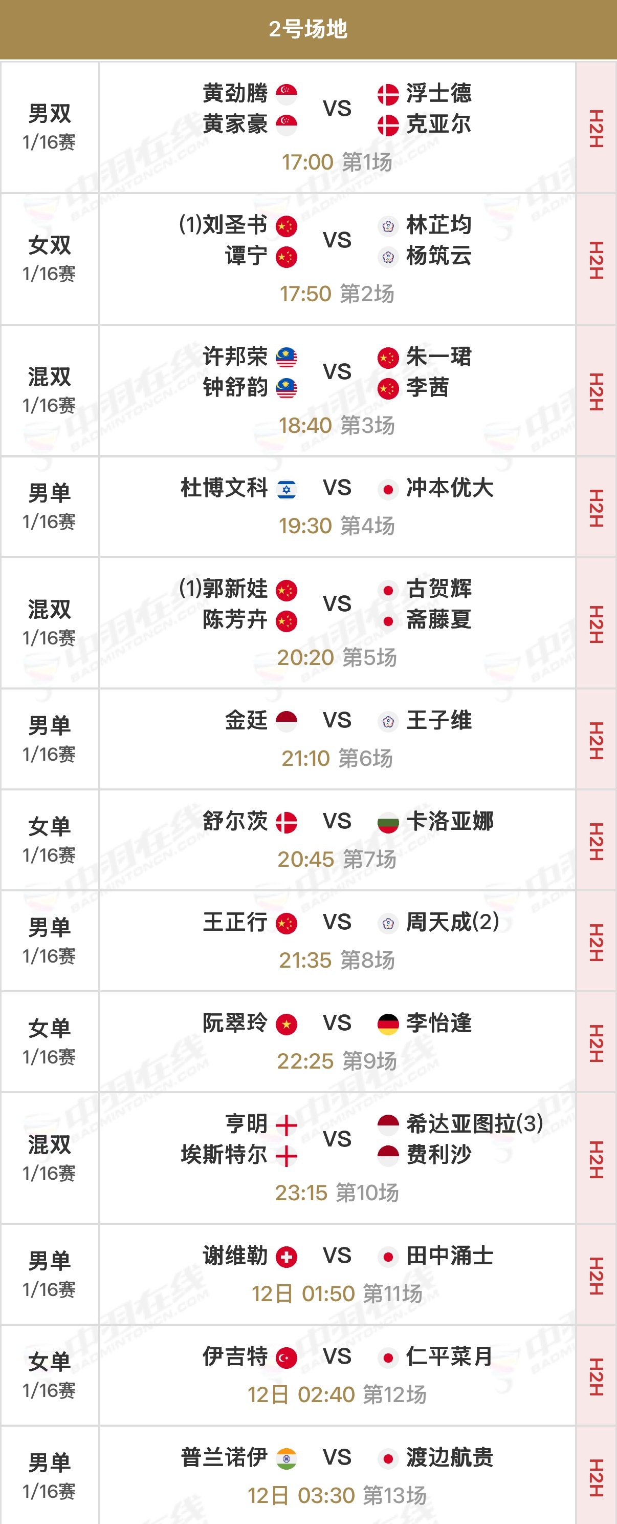 【二号场地】②🇨🇳刘圣书/谭宁vs林芷均/杨筑云ᴛᴘᴇ③🇨🇳朱一珺/李茜vs许邦荣/钟舒韵🇲🇾⑤🇨🇳郭新娃/陈芳卉vs古贺辉/斋藤夏🇯🇵⑧🇨🇳王正行vs周天成ᴛᴘᴇ
