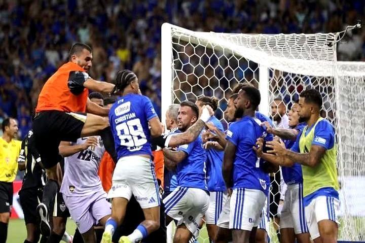 一场球赛后补开23张红牌,直接破了巴西足球的历史纪录。 3月8号米纳斯吉拉斯州锦标赛决赛,克鲁塞罗1:0赢了米内罗竞技,时隔7年拿州冠军。 最后几秒米内罗竞技门将和对方球员起了争执,瞬间两边全队连替补带工作人员冲上去互殴,拳打脚踢闹了一分多钟,最后靠军警进场才按住。 前中超外援胡尔克也卷进了冲突,视频里他挨了一脚当场就回了手。 裁判当时没当场掏红牌,赛后直接在官方报告里补了23张直接红牌,比之前的巴西纪录还多1张。 现在这批拿红牌的球员,首先要自动停赛明年州锦标赛首轮,后续还要走仲裁,搞不好还要追加最多12场停赛,当地警方已经开始收集证据,查有没有刑事责任。 赢了奖杯却丢了人留了隐患,多大的竞技激情,也碰不得规则和法律的红线。
